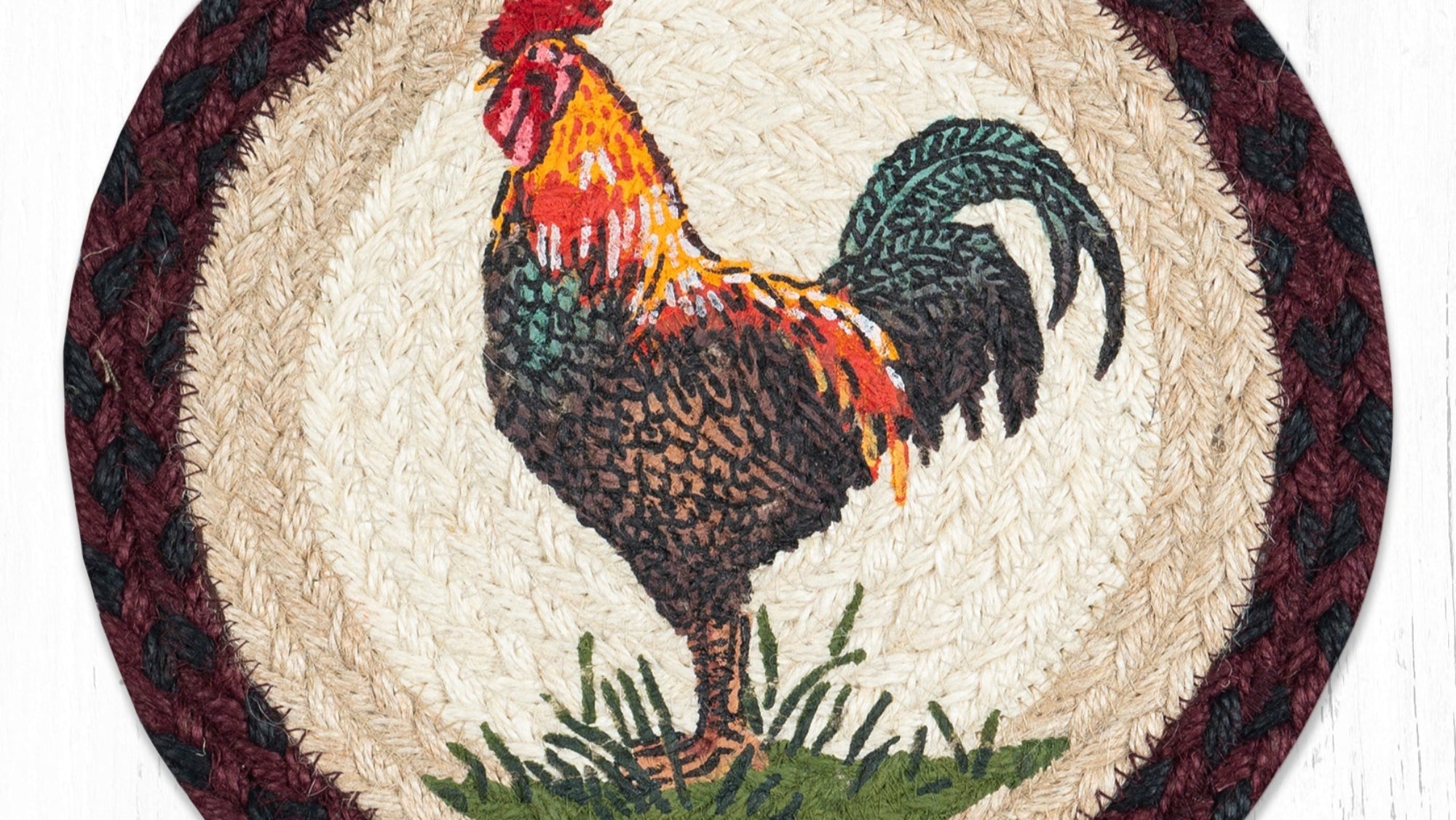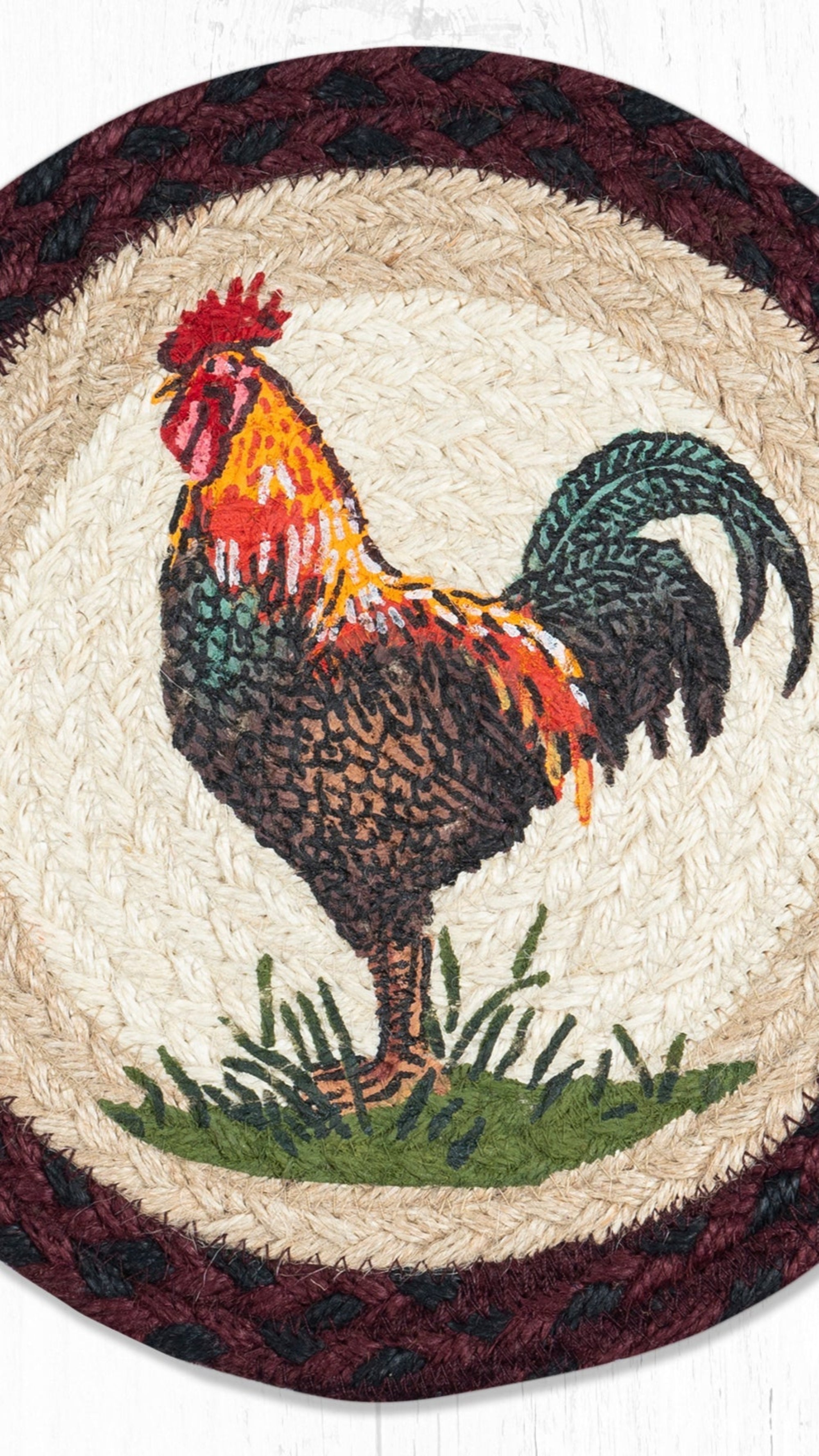 Earth Rugs Decorative Rustic Rooster Printed Round Trivet 10" Farmhouse Kitchen Accent