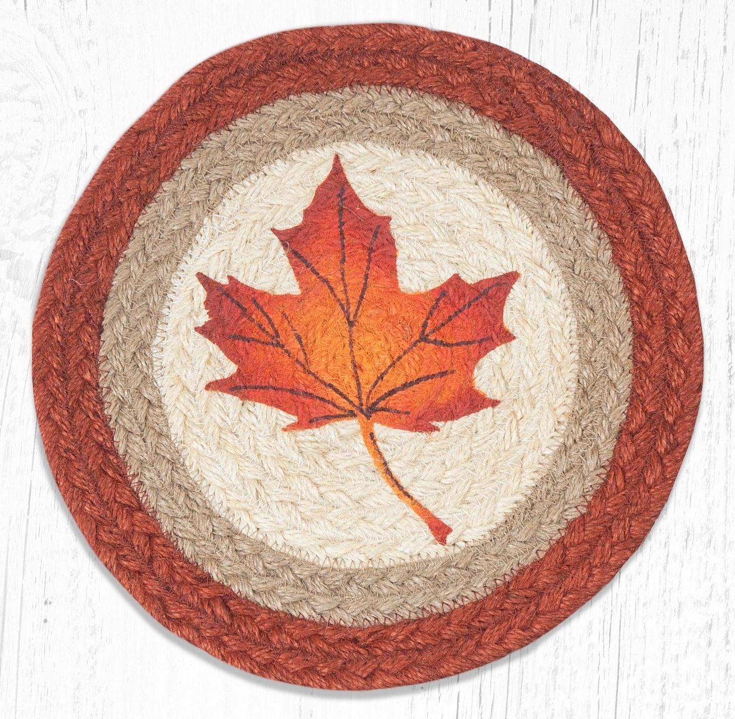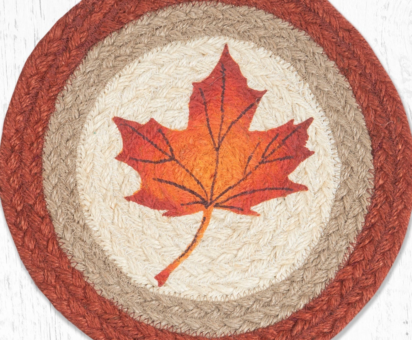 Earth Rugs Maple Leaf Printed Round Trivet – Rustic Braided Jute Hot Pad, 10"x10", Autumn Table Accent