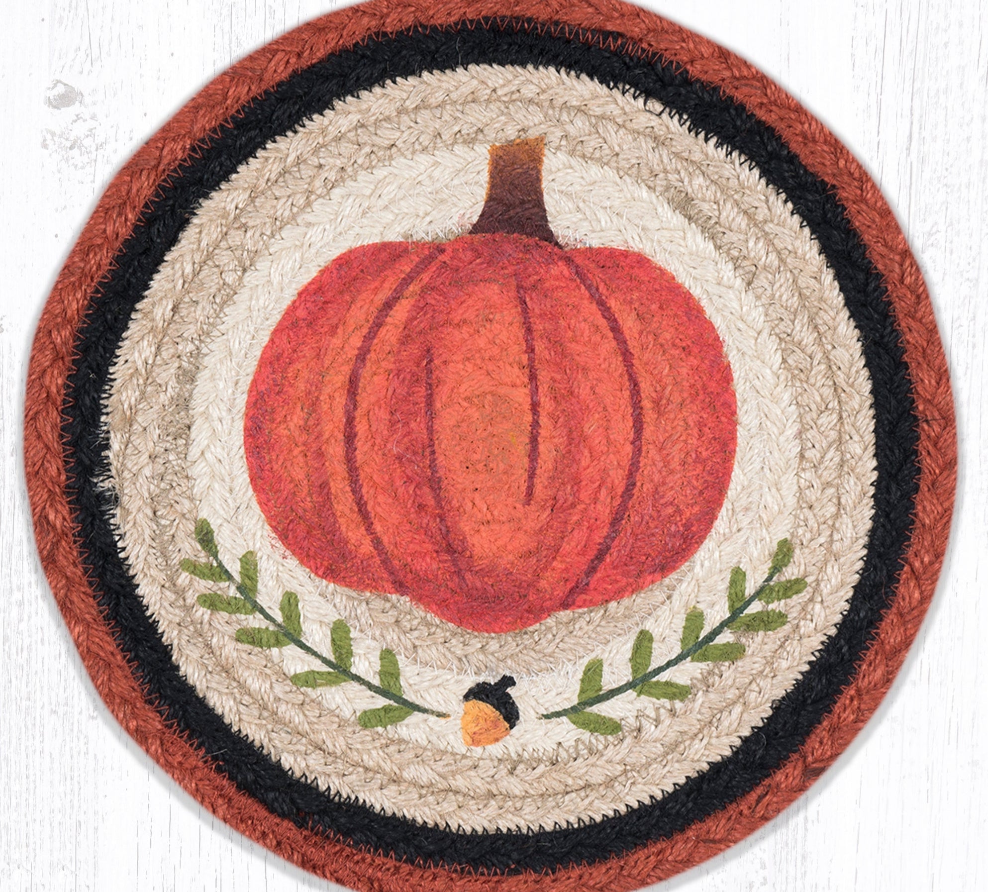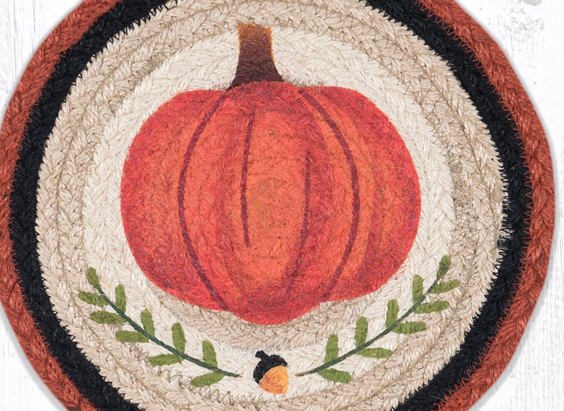 Celebrate the warmth of autumn gatherings with the Earth Rugs Pumpkin Perfect Printed Round Trivet, sized at 10"x10". This charming table accent features a hand-braided jute base with a delightful pumpkin print—ideal for adding seasonal charm while protecting surfaces from hot dishes. With its rustic appeal and earthy color palette, this round trivet effortlessly blends into farmhouse, country, or fall-themed spaces. Use it under serving dishes, teapots, or even candles to create a welcoming tablescape filled with cozy harvest vibes.