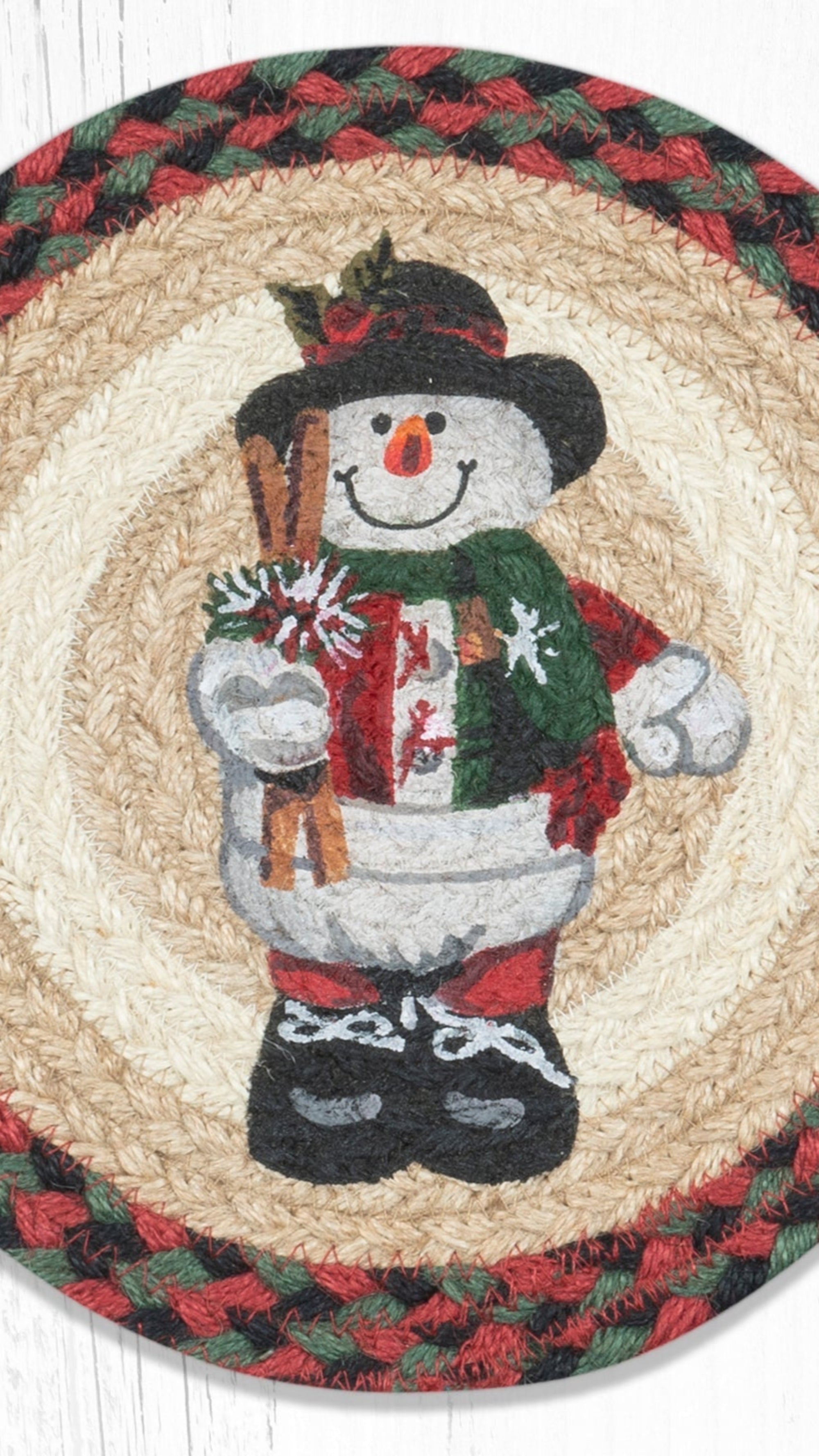 Earth Rugs Snowman in Top Hat Round Trivet – Rustic Holiday Kitchen Hot Pad 10"x10"
