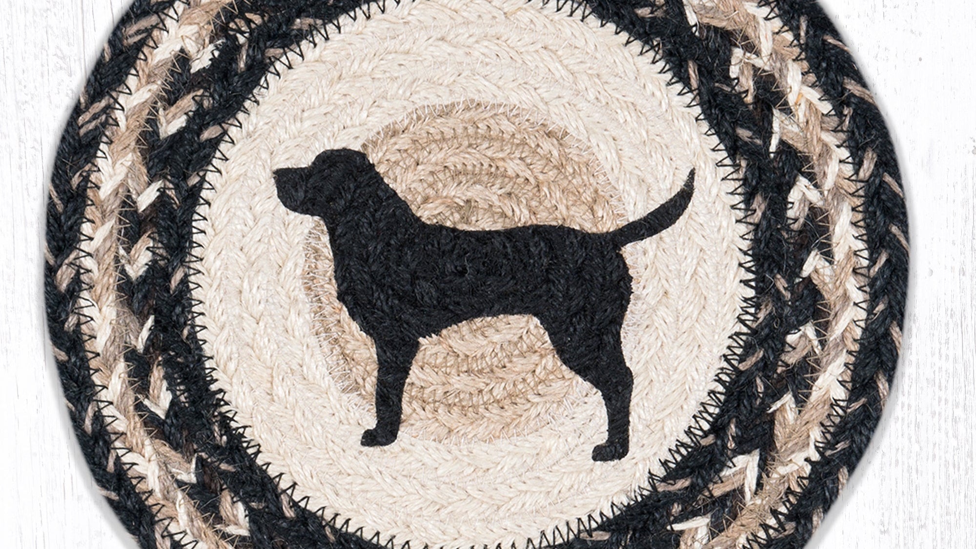 Black Lab Round Trivet – 10"x10" Dog Silhouette Braided Hot Pad in Rustic Natural Fiber Design
