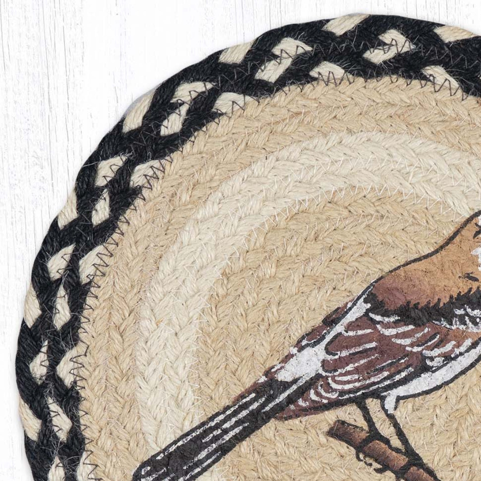 SKU - ER80-430MBEarth Rugs Nature-Inspired Jute Trivet – 10"x10" Round Heat Pad with Bird Motif