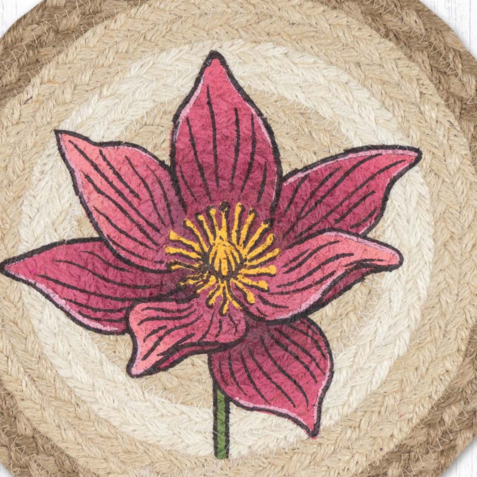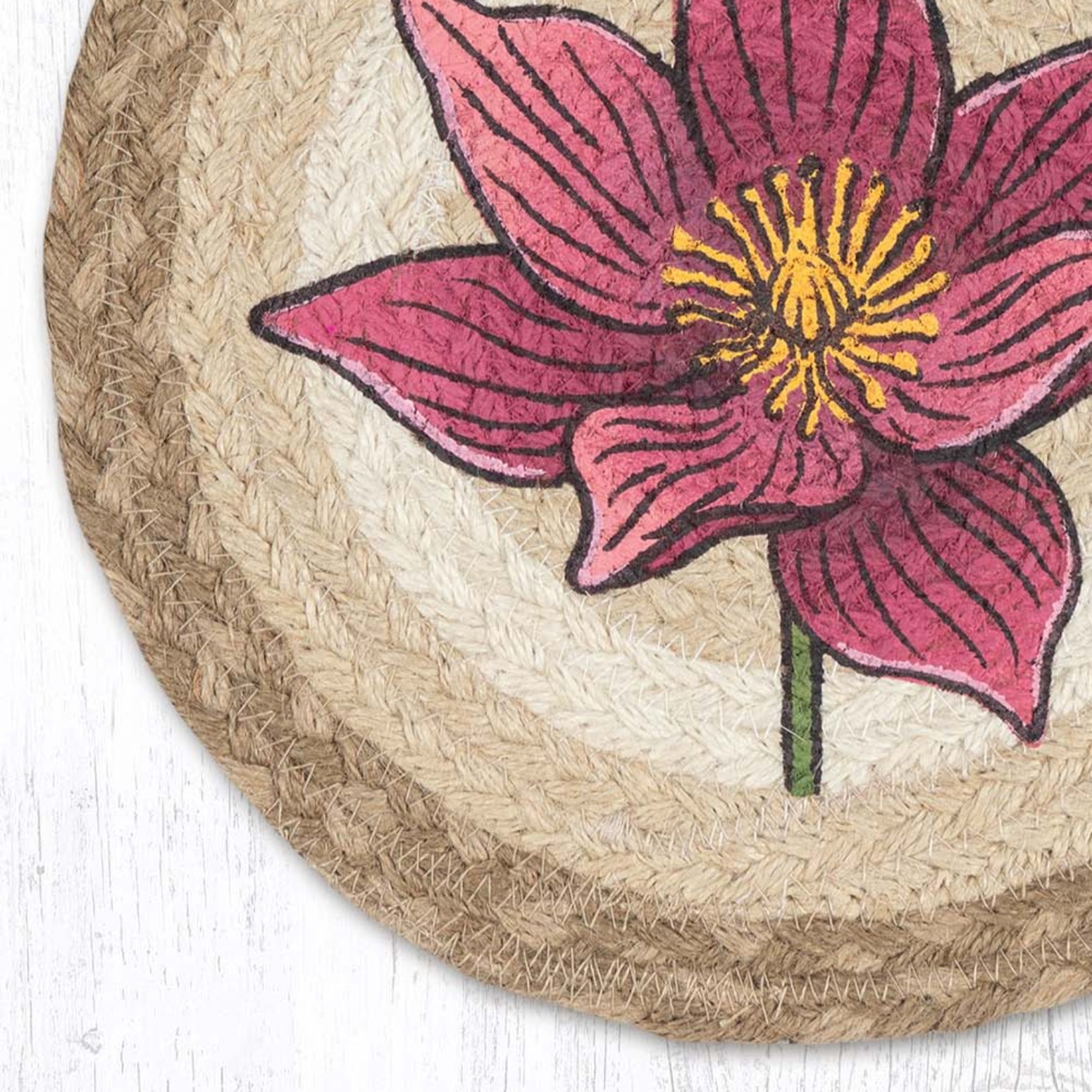 Floral Jute Trivet – 10" Round Mat with Hand-Stenciled Lily Design