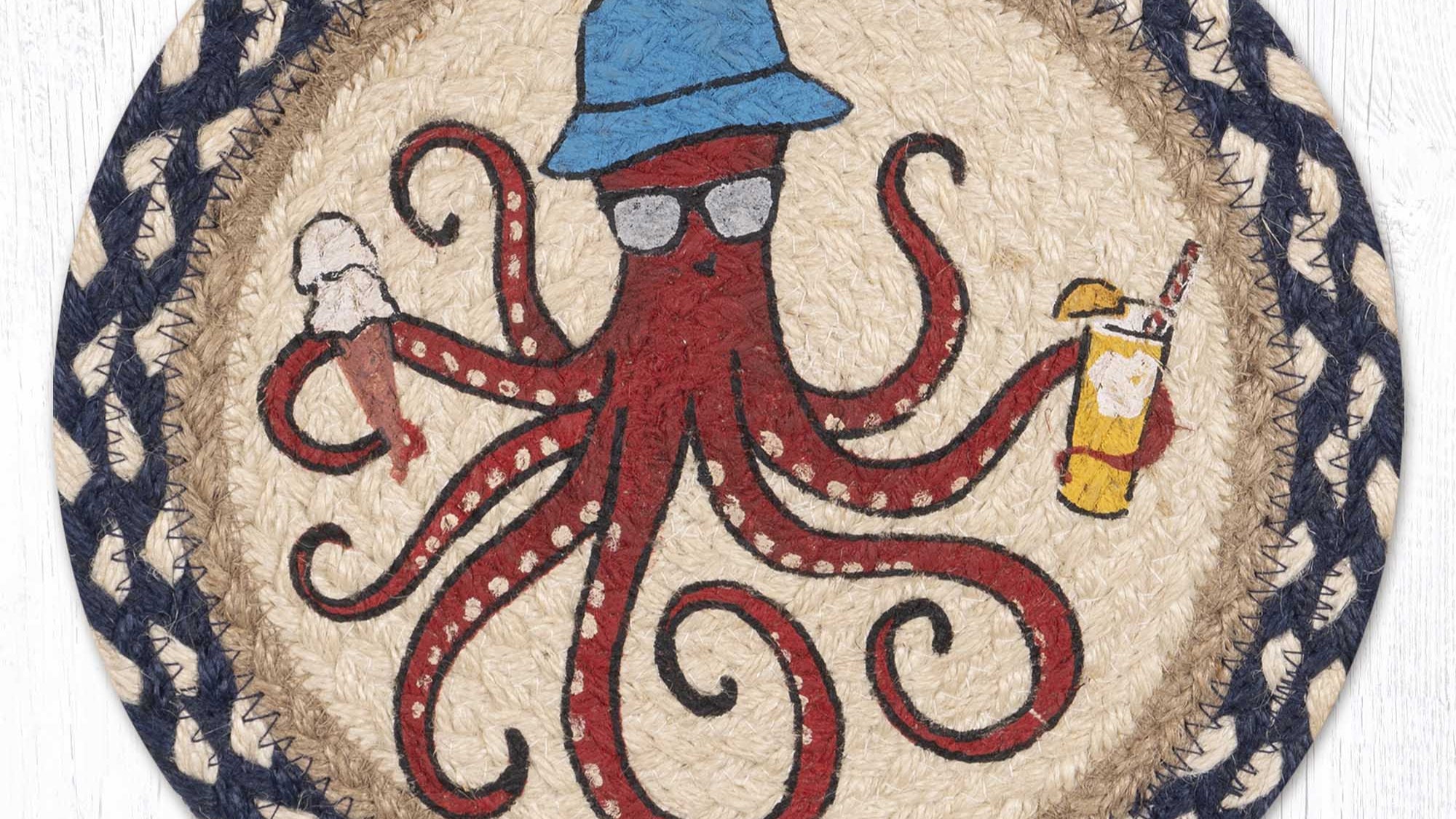 Earth Rugs Octopus Garden Printed Round Trivet – 10" Coastal Kitchen Accent