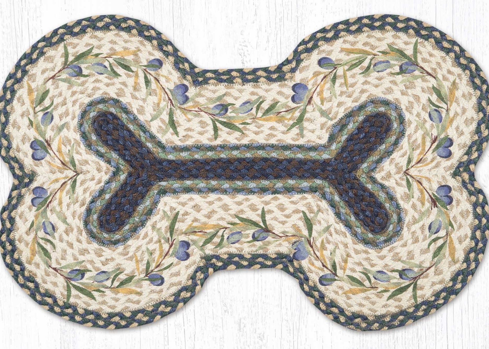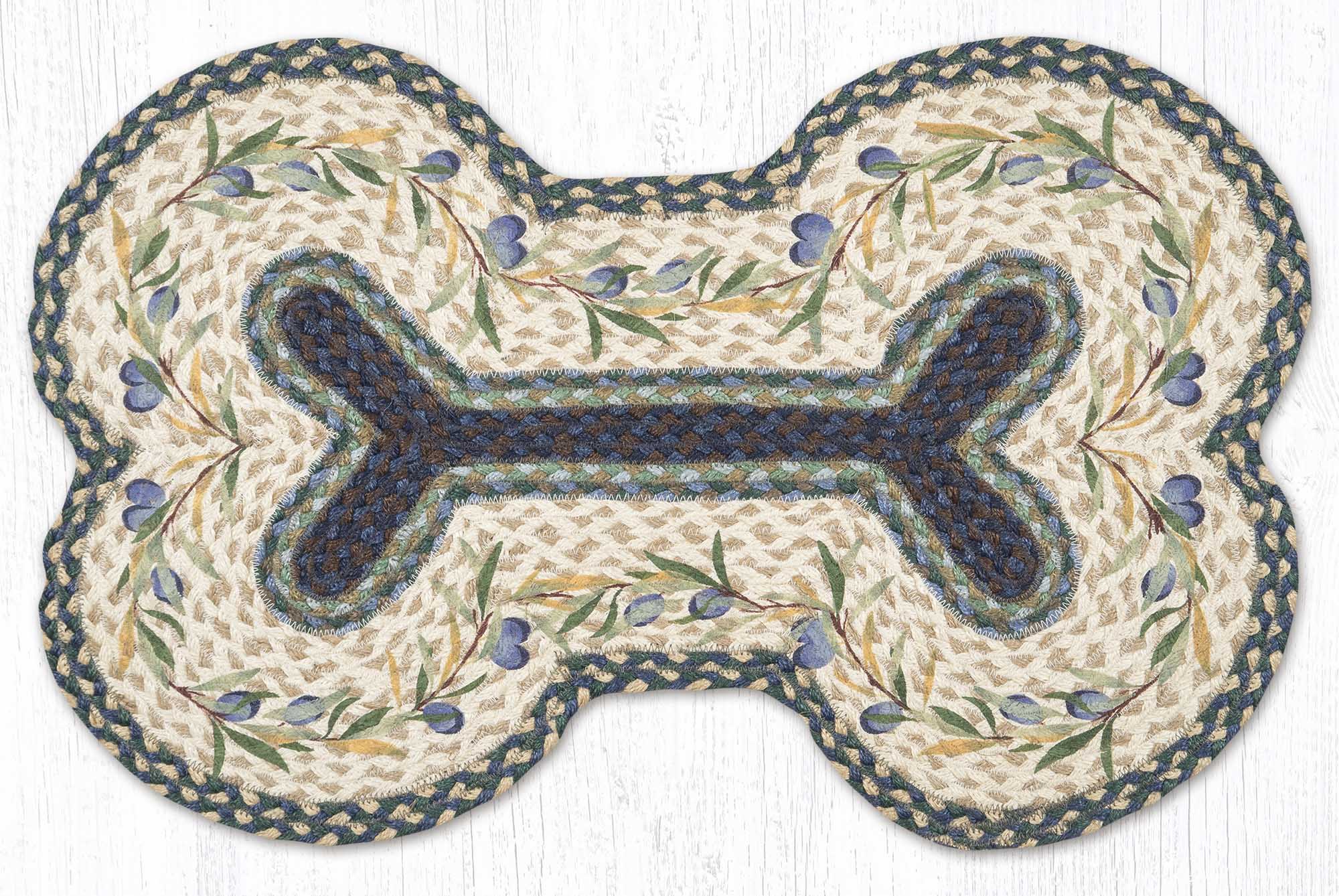 bone shaped olive green dog rug,braided jute dog bone mat,country style pet feeding mat,dog bone shaped pet rug with olive border,eco-friendly olive pet rug,farmhouse dog bone jute mat,farmhouse style olive border pet mat,handcrafted jute dog bone rug,natural fiber olive pet area rug,olive border braided dog rug,olive border dog bone rug,olive green dog bone pet mat,rustic cabin pet rug,rustic olive border pet feeding rug