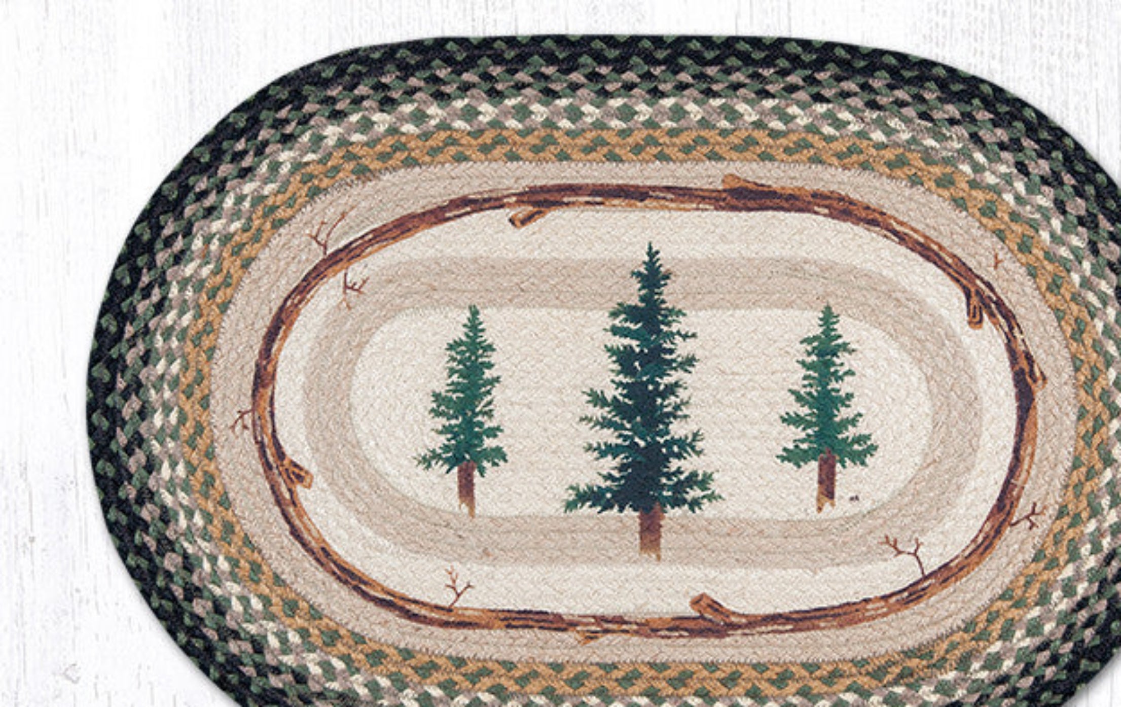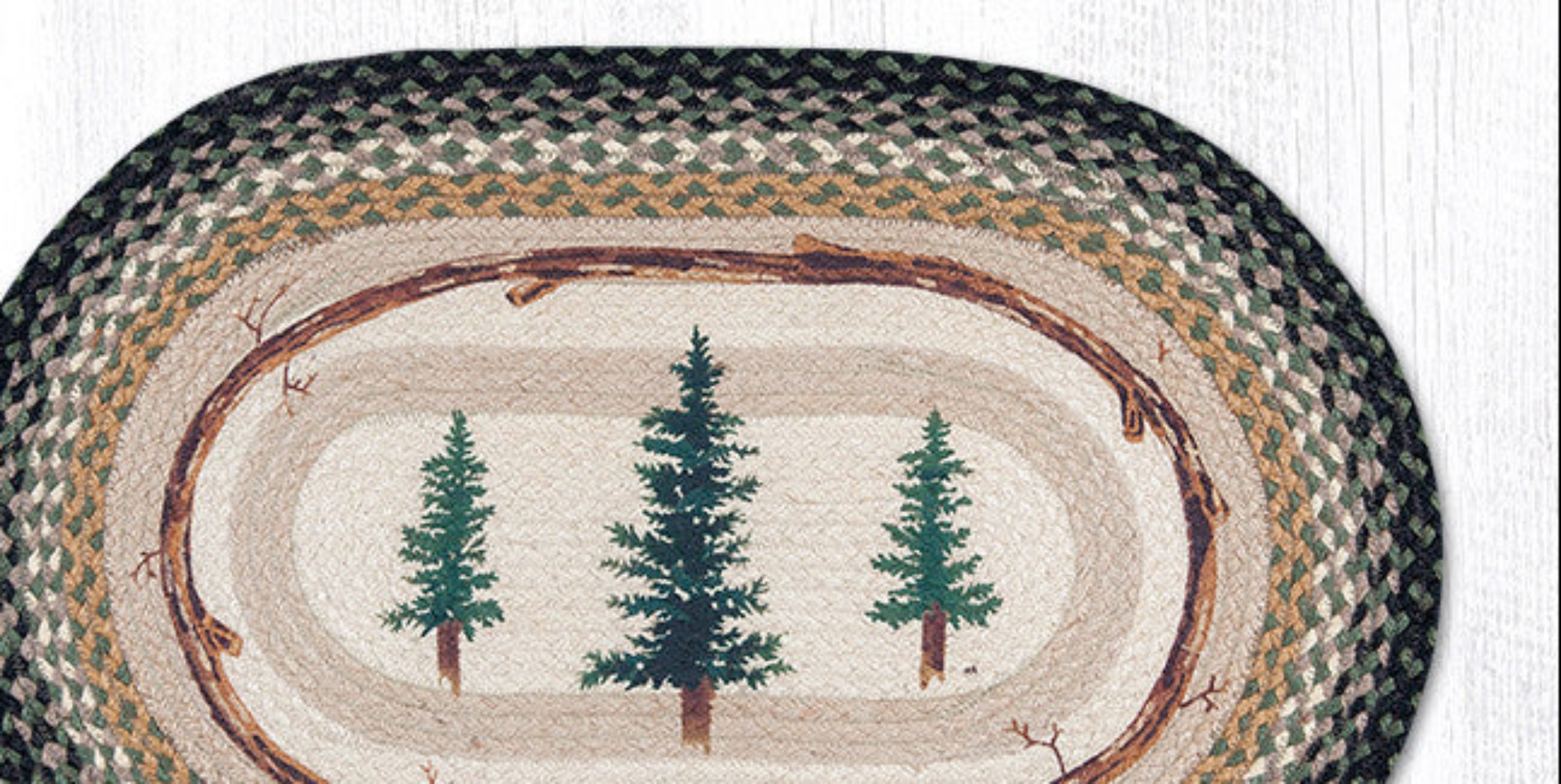 Earth Rugs Oval Patch Tread – 20"x30" Braided Jute Rug with Tall Timbers Forest Scene, Rustic Cabin Accent for Entry or Kitchen