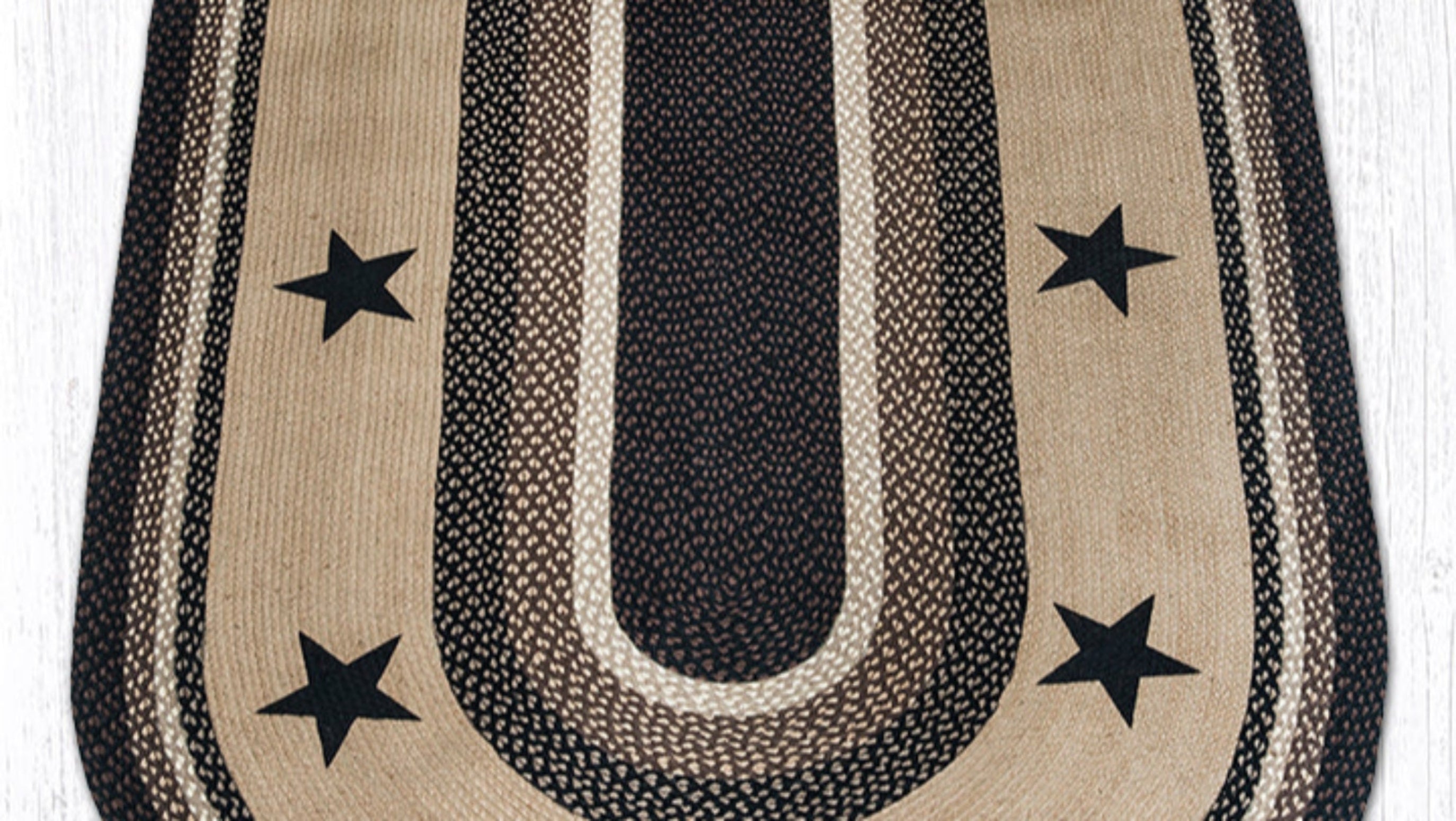 Made from 100% natural jute, this eco-friendly rug showcases traditional hand-braided craftsmanship. The black stars create a striking primitive Americana accent, while the oval shape offers versatile placement for living rooms, bedrooms, or entryways.