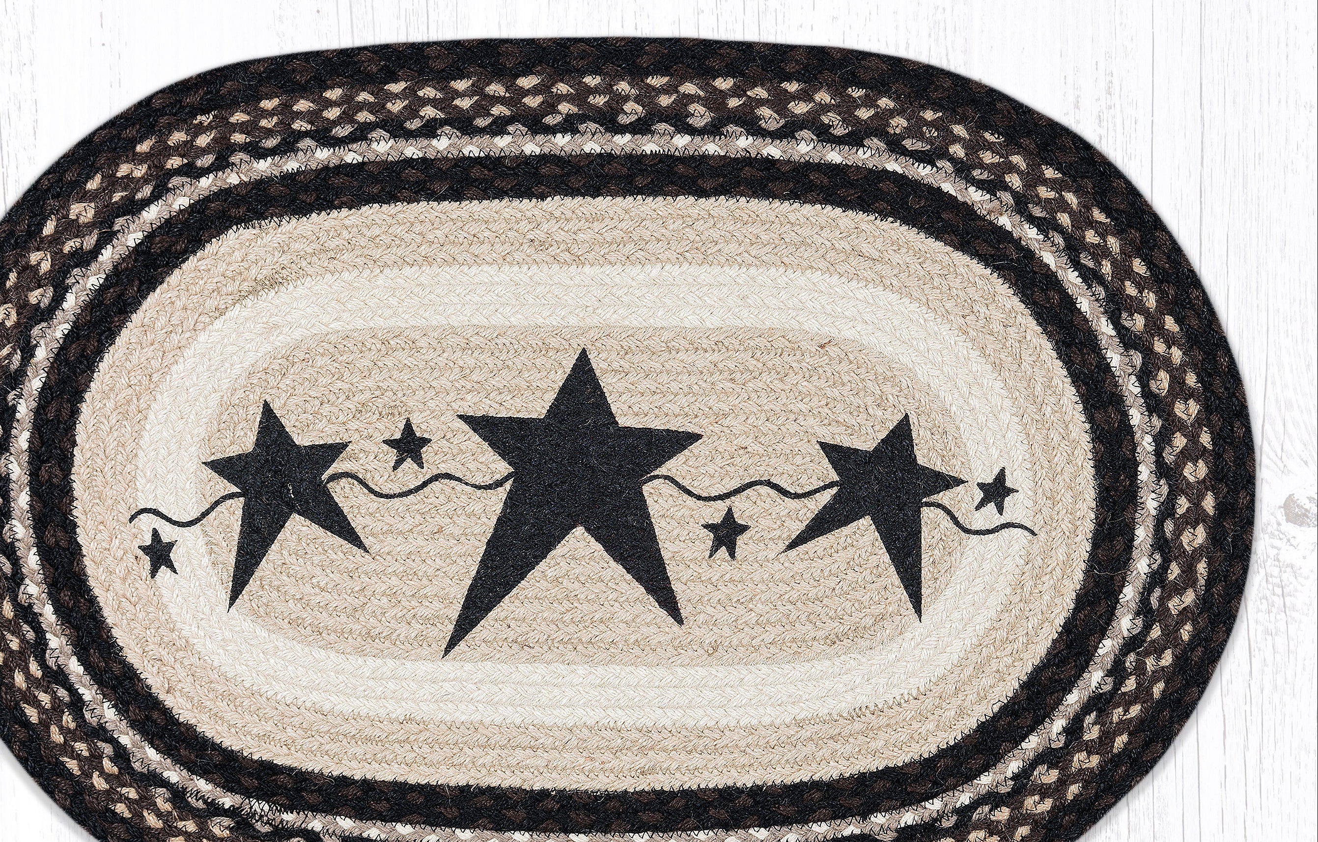 Primitive Stars Black Oval Patch Tread– 20"x30" Wool Blend, Rustic Country Accent for Farmhouse Decor