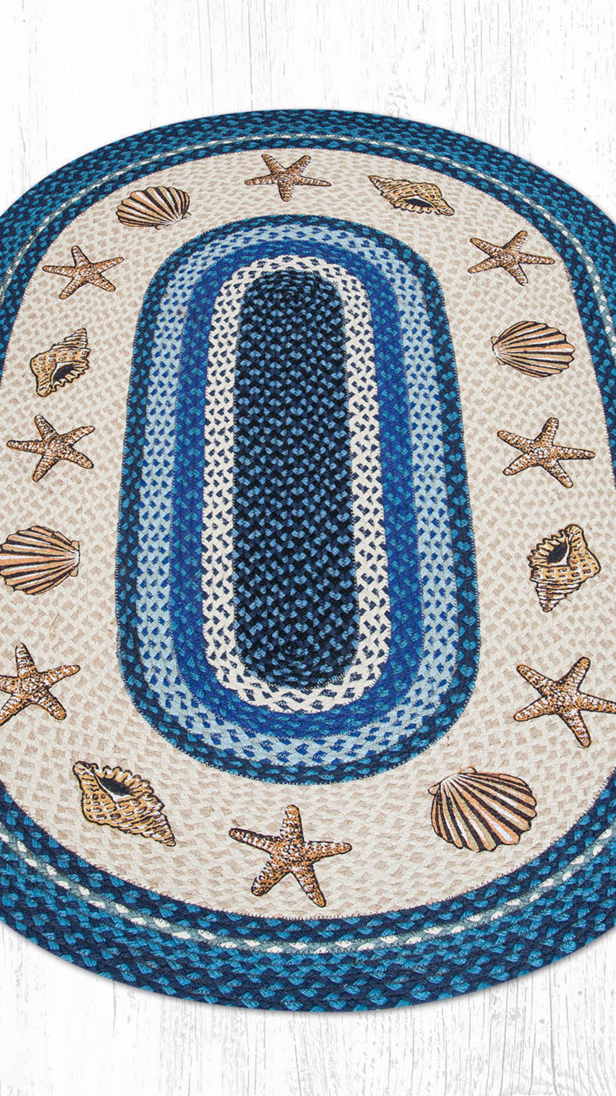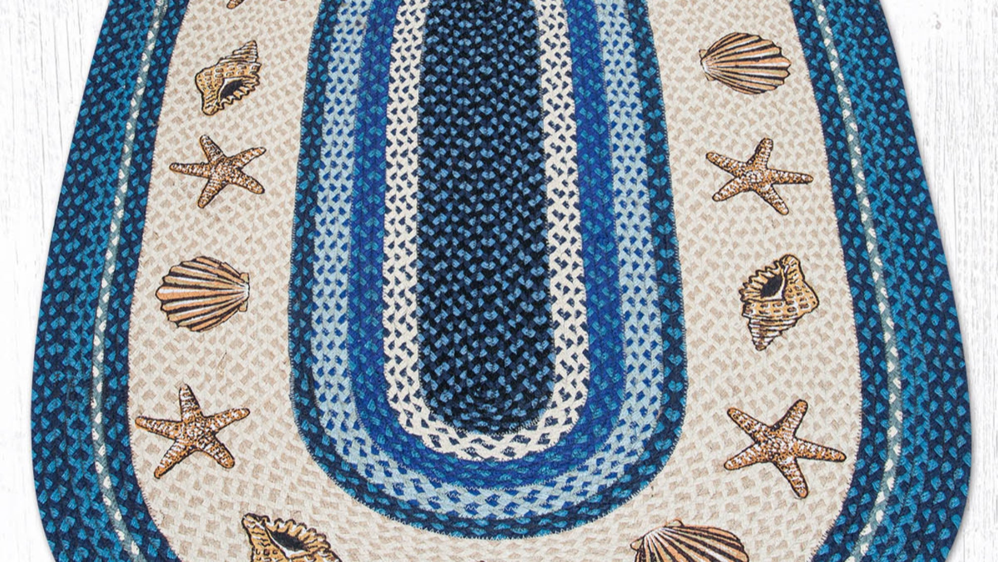 - Add Coastal Charm with a seashell-inspired oval rug design.