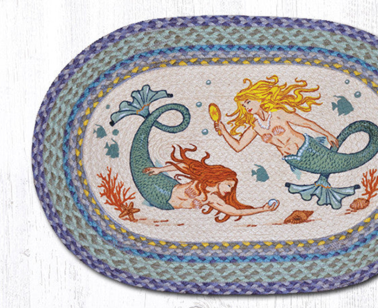Mermaids Oval Jute Tread – 20"x30" Handcrafted Coastal Rug Accent