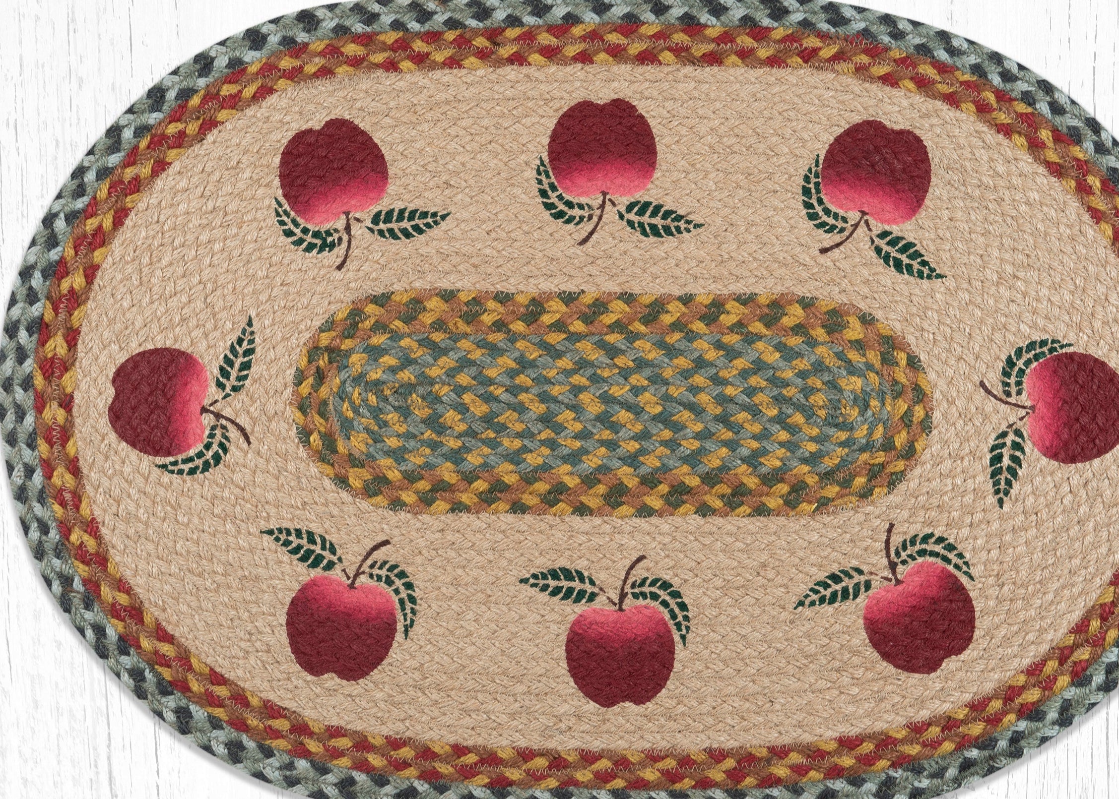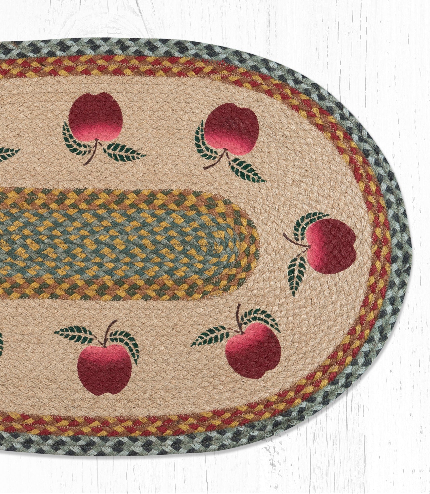 OP-42 Apples Oval Braided Jute Tread – 20"x30" Hand-Stenciled Farmhouse Accent Rug