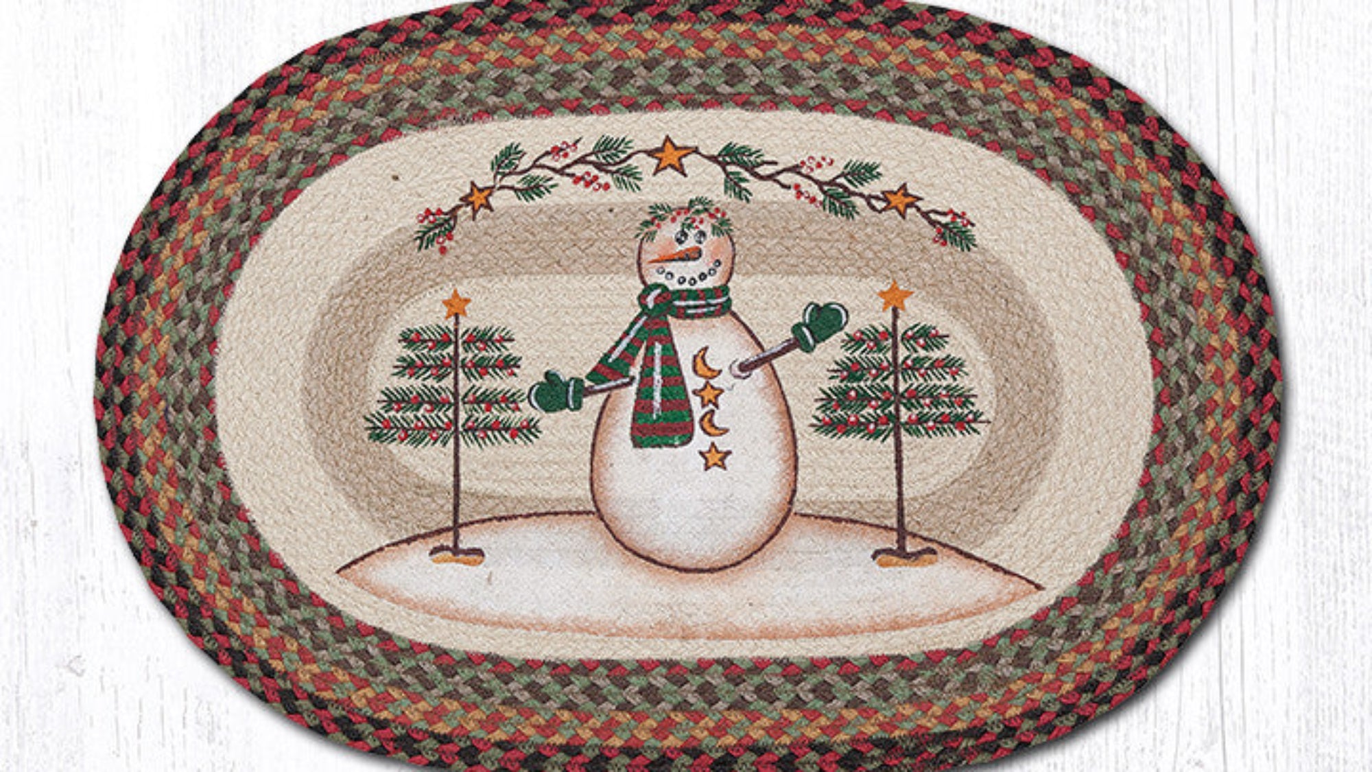 braided jute Christmas rug,braided jute winter rug,Christmas entryway rug,Earth Rugs,Earth Rugs holiday rug,eco-friendly holiday rug,farmhouse holiday décor rug,handcrafted braided oval rug,lodge cabin Christmas rug,moon and star snowman rug,oval 20x30 holiday rug,Placemat,rustic Christmas oval rug,rustic country Christmas rug,rustic farmhouse snowman rug,rustic lodge holiday decor,rustic winter oval rug,Under $100