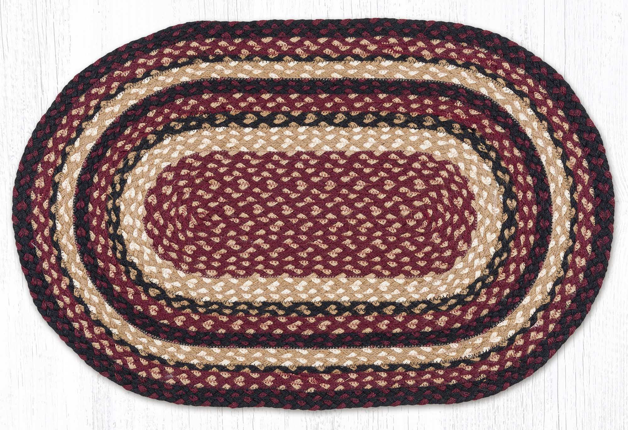 Earth Rugs Oval Braided Jute Rug – Burgundy, Black & Tan Rustic Farmhouse