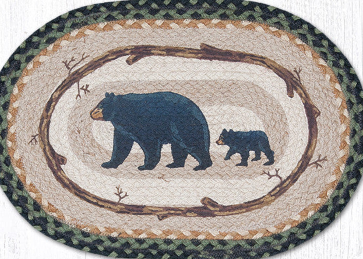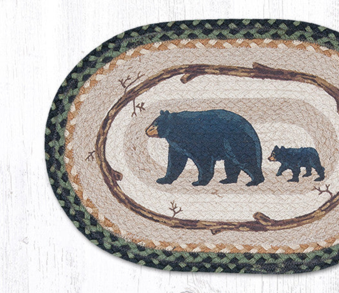 Earth Rugs PM OP 116 Mama and Baby Bear Oval Jute Placemat – 13"x19", Hand Stenciled
