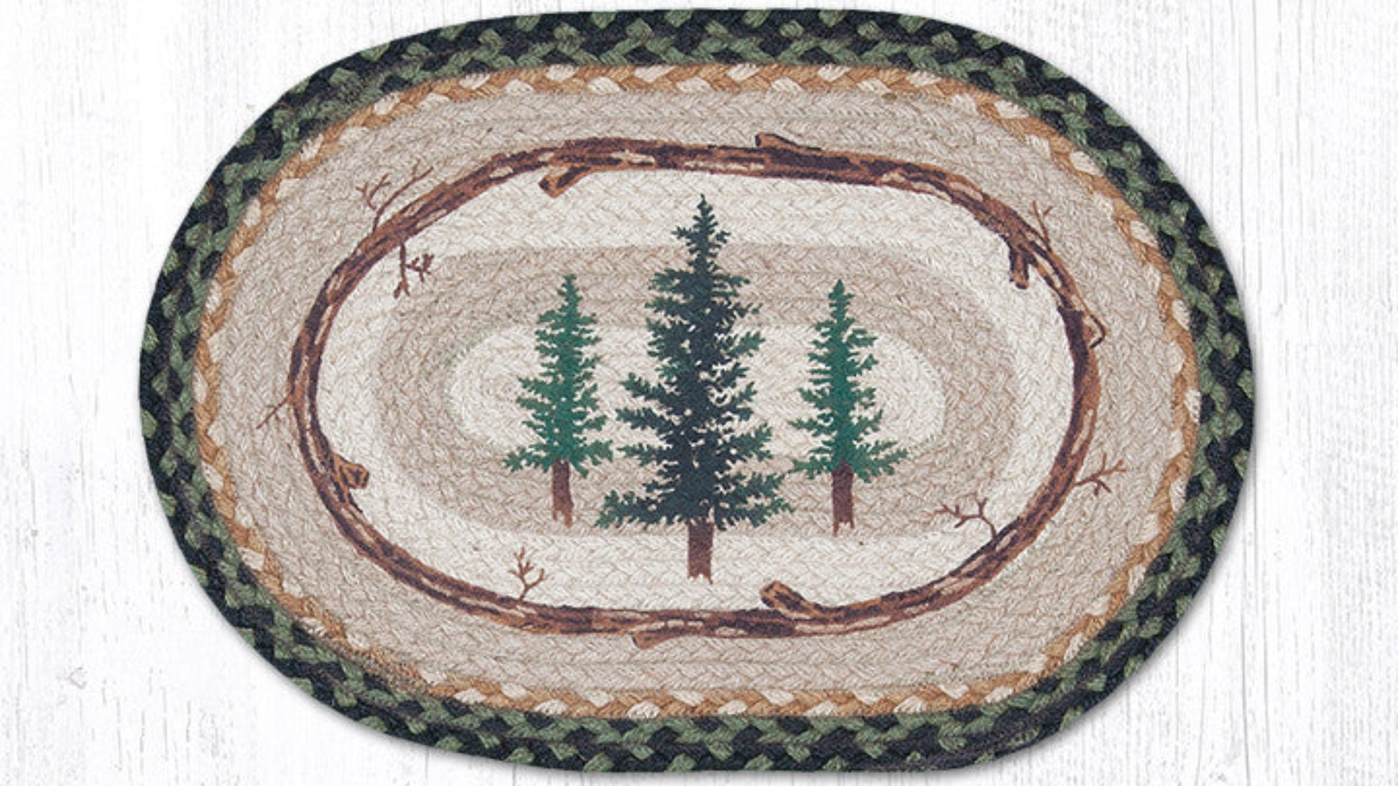 Earth Rugs Tall Timbers Oval Braided Placemat 13"x19" – Rustic Cabin Lodge Table Decor