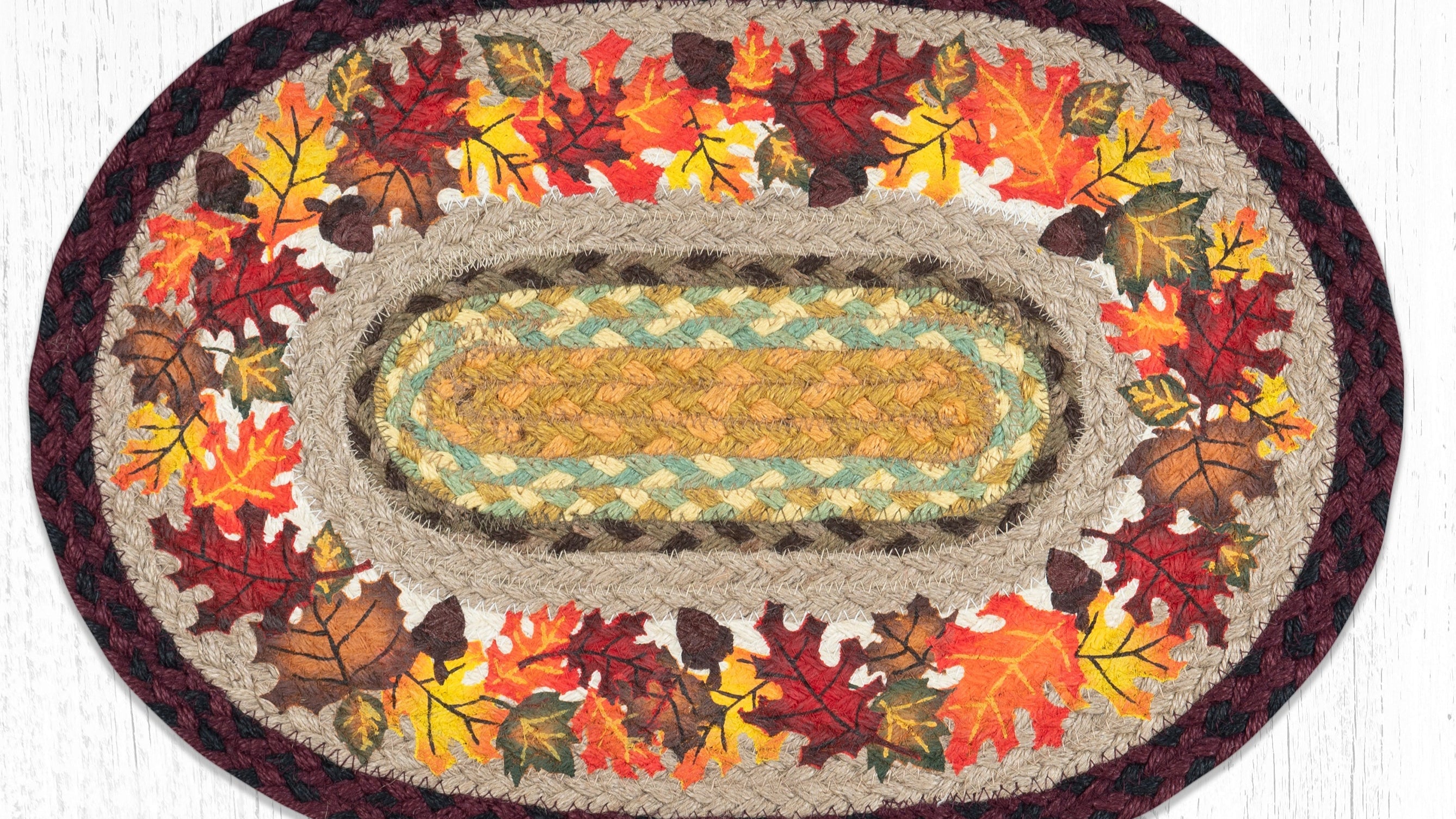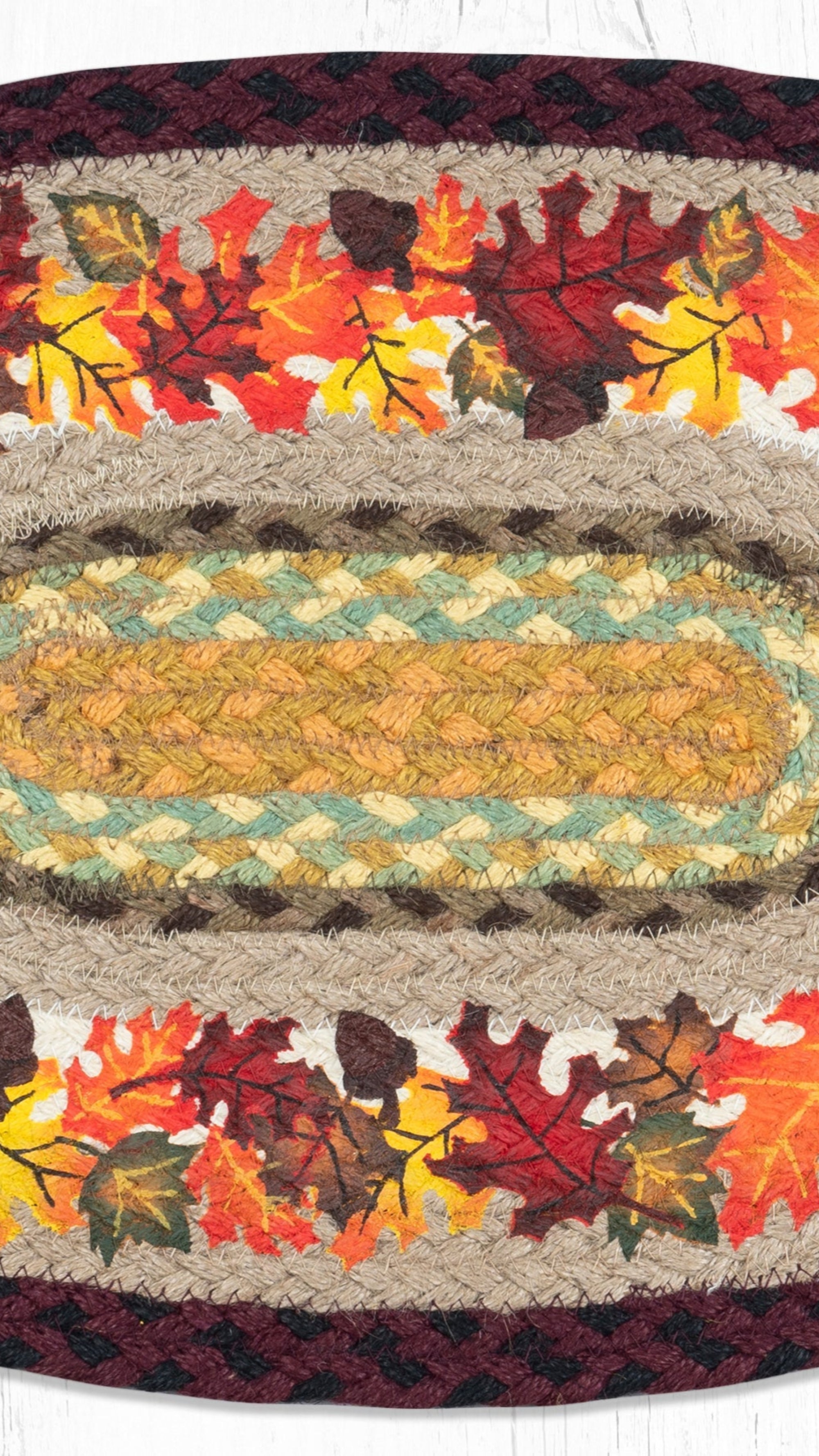 autumn farmhouse table mat,autumn kitchen décor,autumn placemat,autumn table accessory,country style dining mat,Earth Rugs,Earth Rugs hand-braided placemat,eco-friendly fall placemat,fall leaves table mat,farmhouse oval placemat,hand-braided fall placemat,handwoven oval placemat,oval rustic placemat,Placemat,rustic farmhouse table mat,rustic seasonal table décor,seasonal jute placemat,Uber Living,Under $100