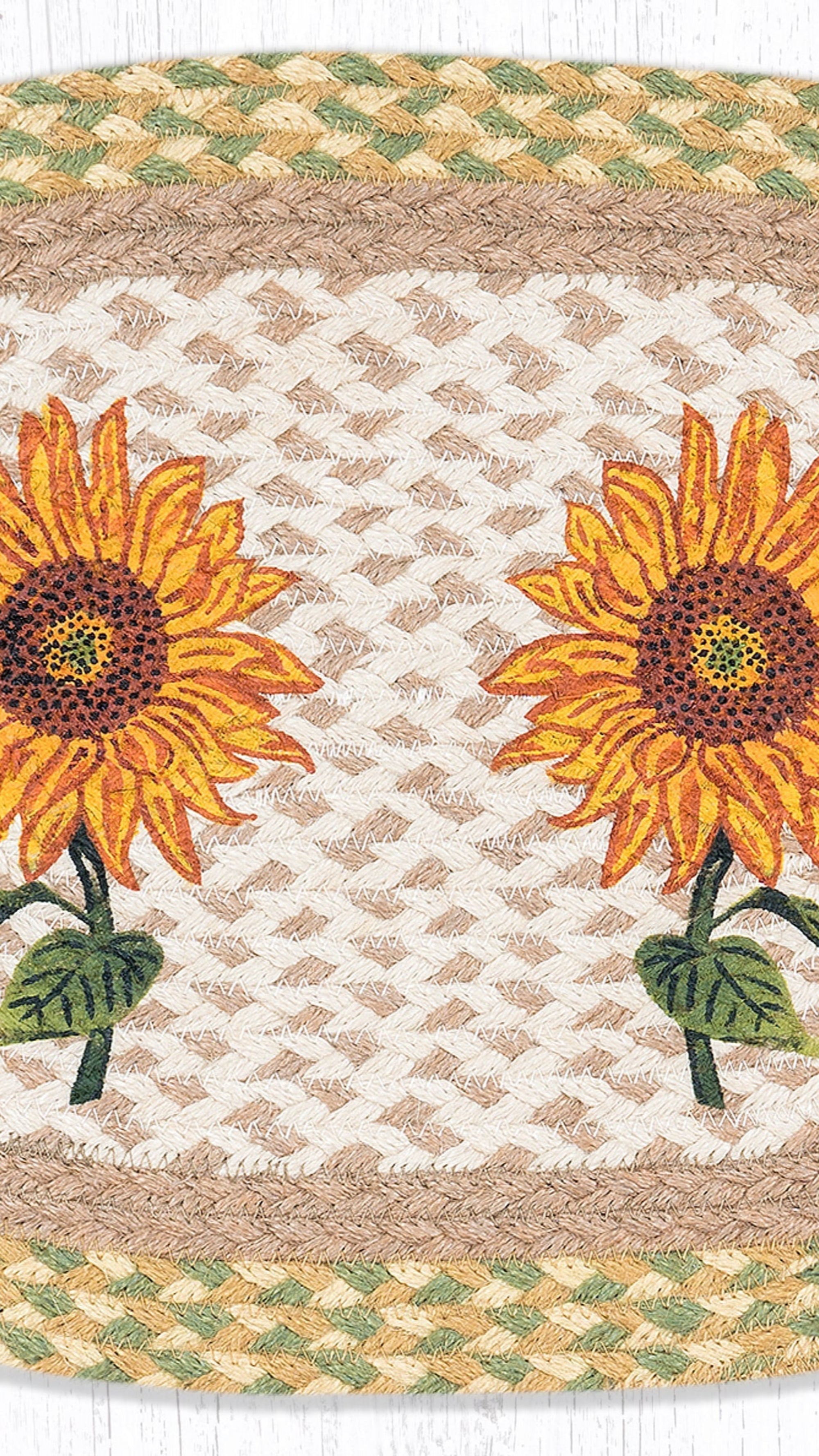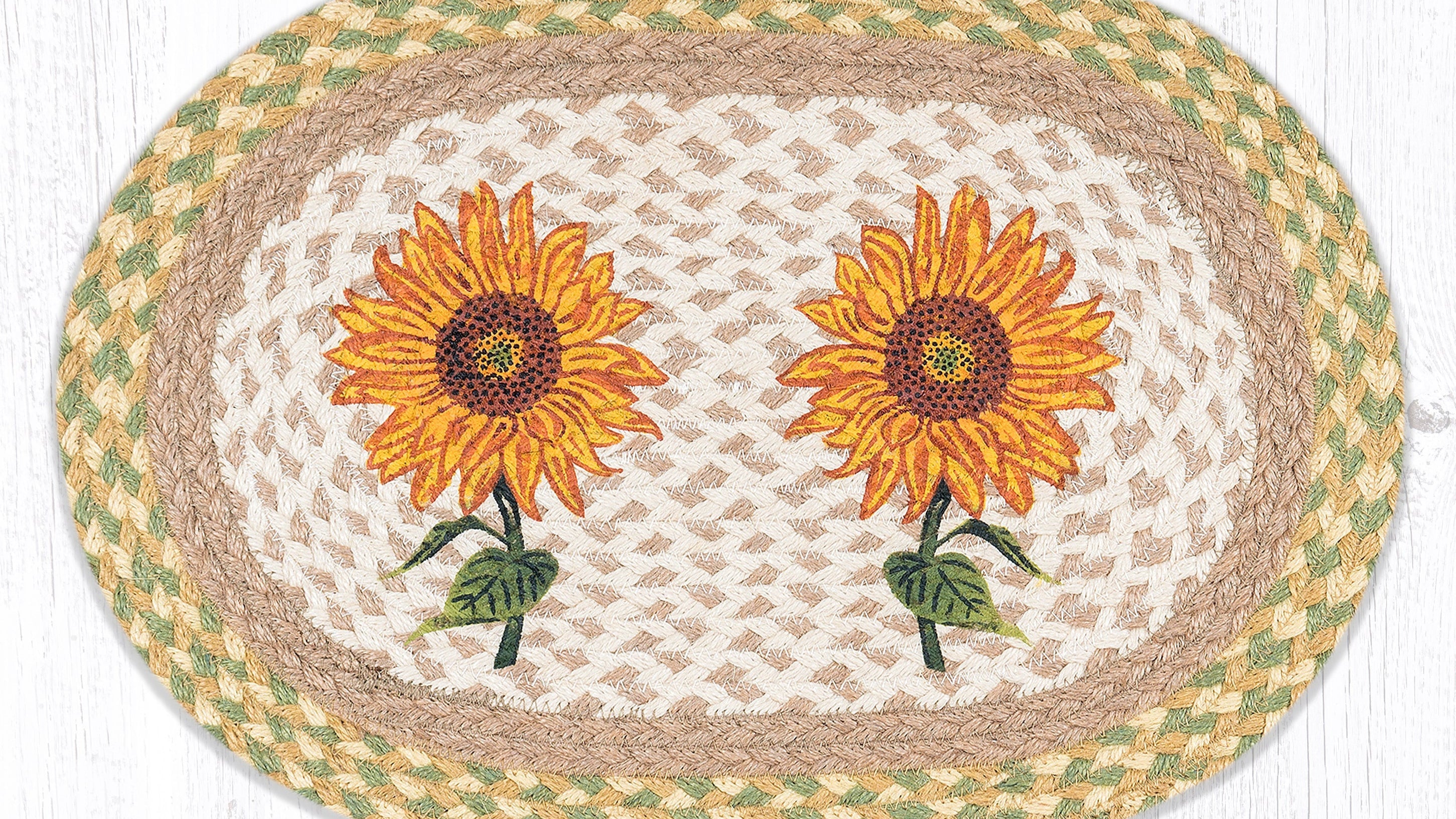 Earth Rugs Sunflowers Oval Placemat 13x19 Handcrafted Jute Farmhouse Table Decor