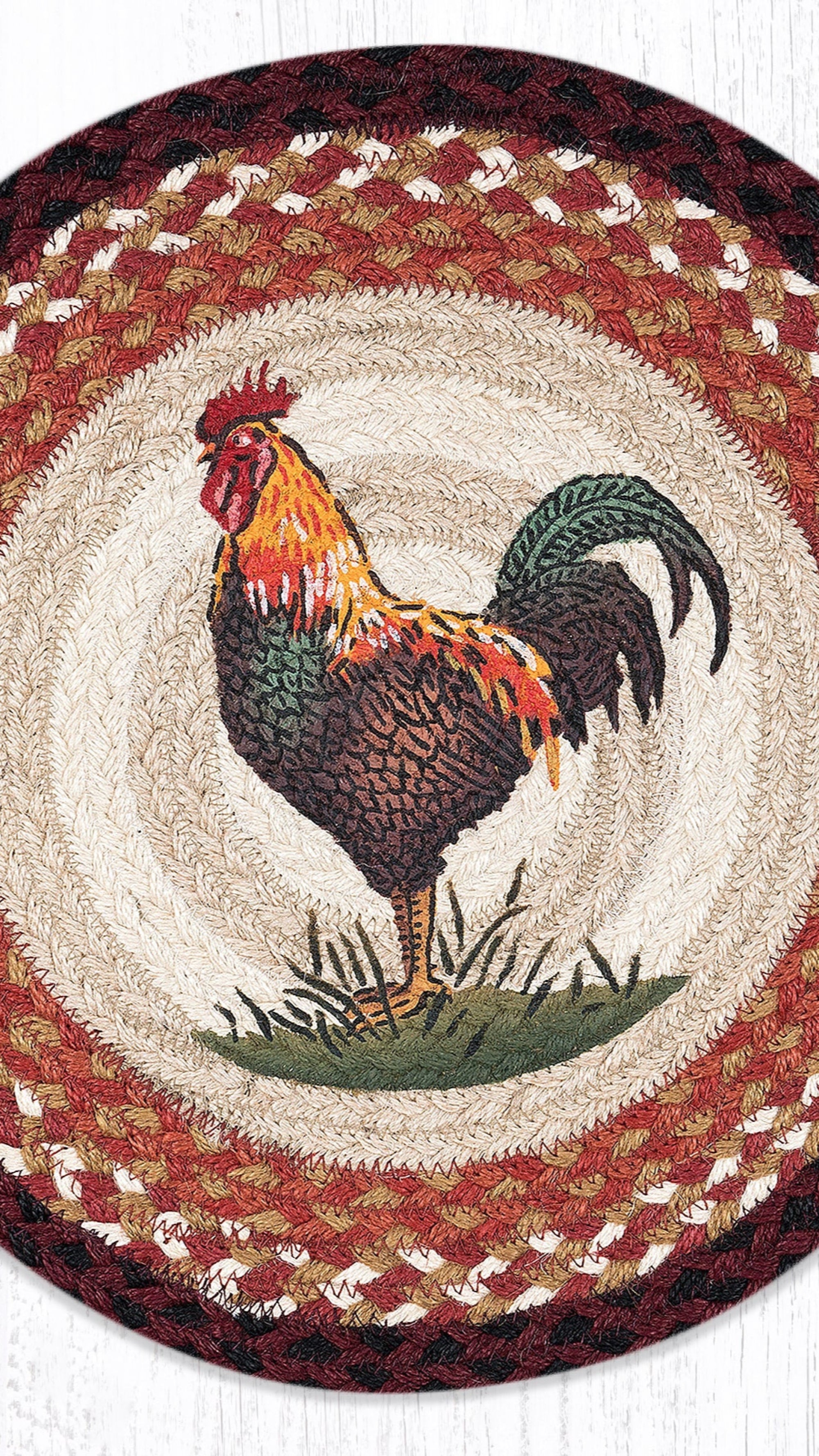 Earth Rugs Rustic Rooster Printed Jute Round Placemat 15"x15" Durable Table Mat