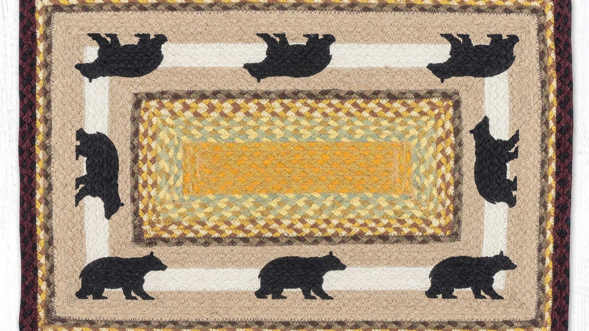 Earth Rugs Cabin Bear 2 Oblong Jute Patch Tread 20"x30" Eco-Friendly Rustic Style