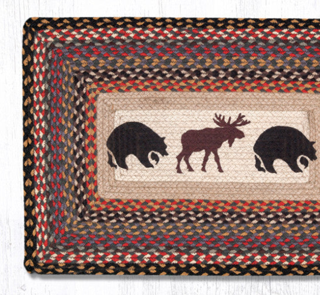bear moose tread,braided jute tread,braided oblong runner,Earth Rugs,Earth Rugs tread,eco friendly jute tread,hand stenciled jute tread,handcrafted jute floor rug,lodge cabin stair tread,lodge style accent rug,oblong rug 20x30,rustic farmhouse accent,rustic jute rug,Uber Living,Under $100,woodland cabin décor