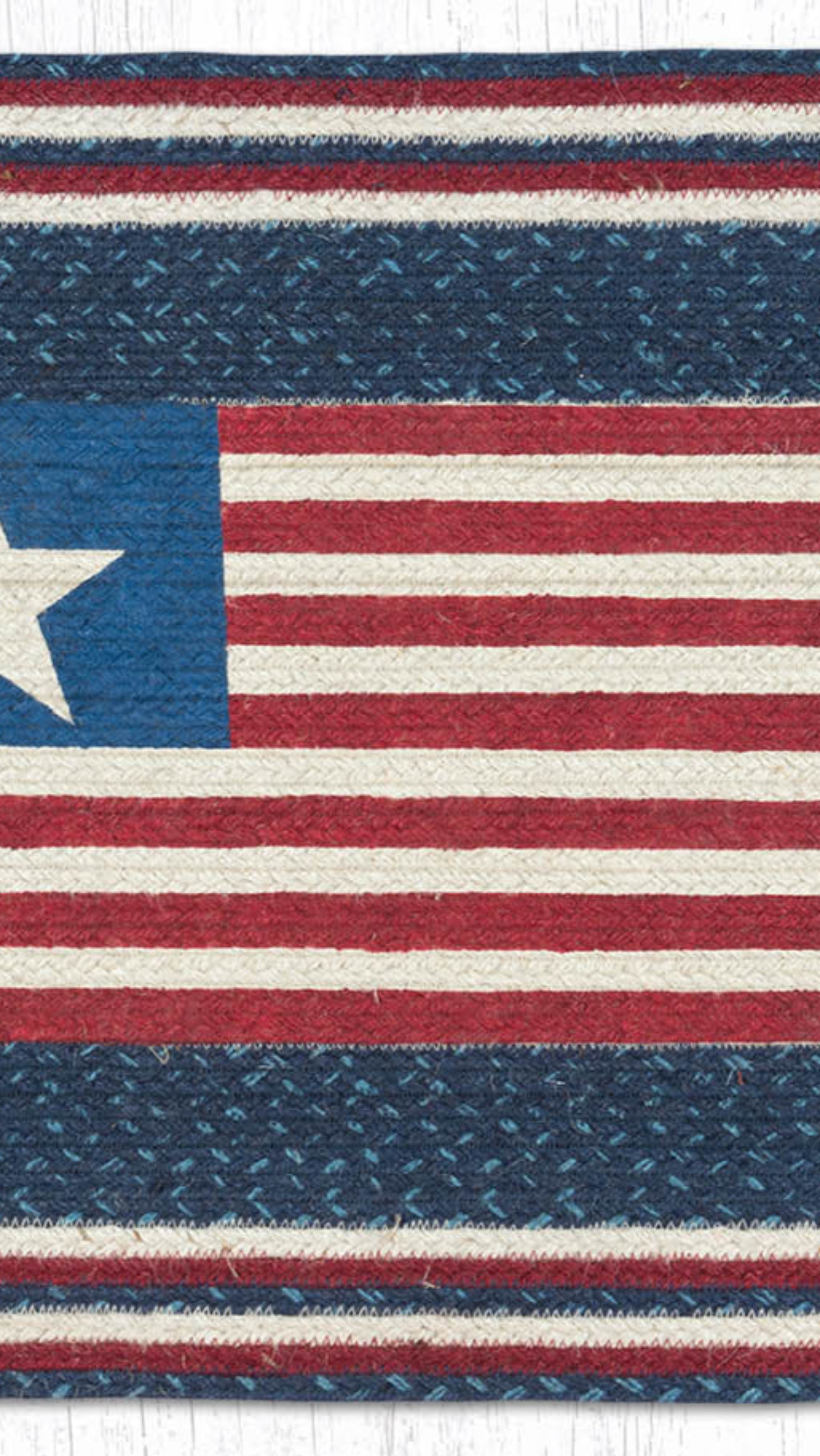 American flag rug,Americana floor accent,braided jute flag rug,Earth Rugs,Earth Rugs American flag mat,eco-friendly jute rug,farmhouse entryway patriotic mat,lodge Americana oblong rug,patriotic farmhouse rug,rustic Americana décor,rustic farmhouse patriotic rug,rustic patriotic kitchen rug,Under $100,USA country décor rug