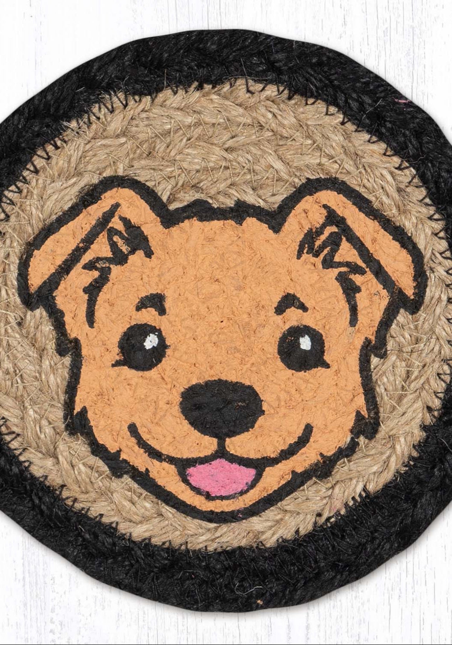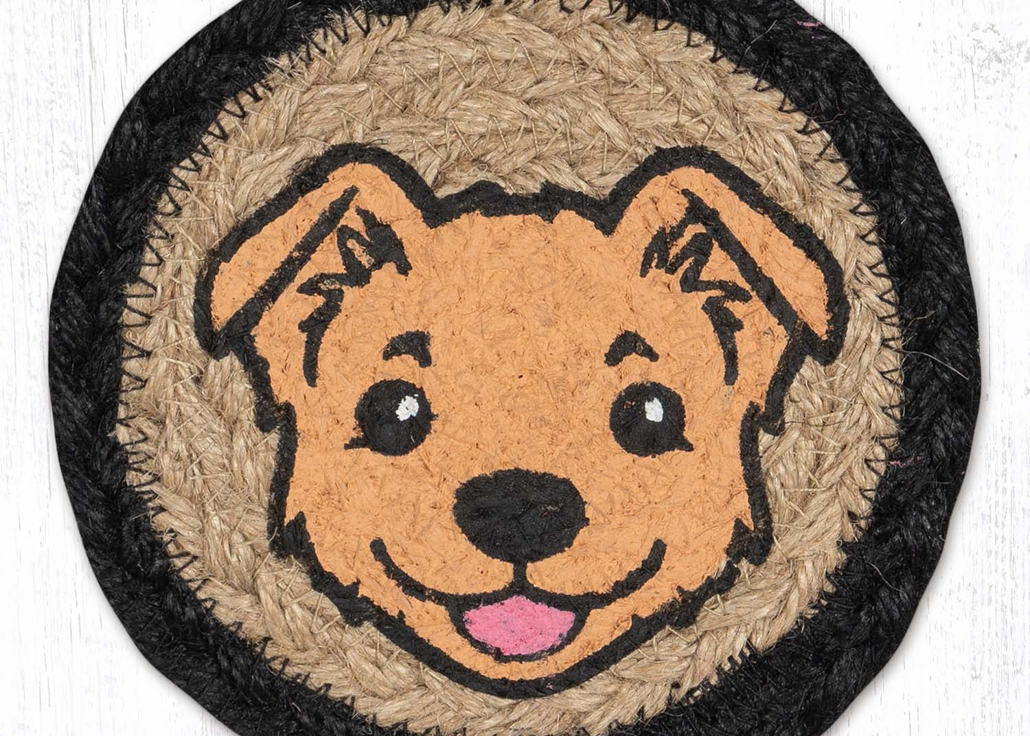 Earth Rugs Puppy Face Round Coaster 5"x5" – Handcrafted Natural Jute Braided Coaster with Hand-Stenciled Design