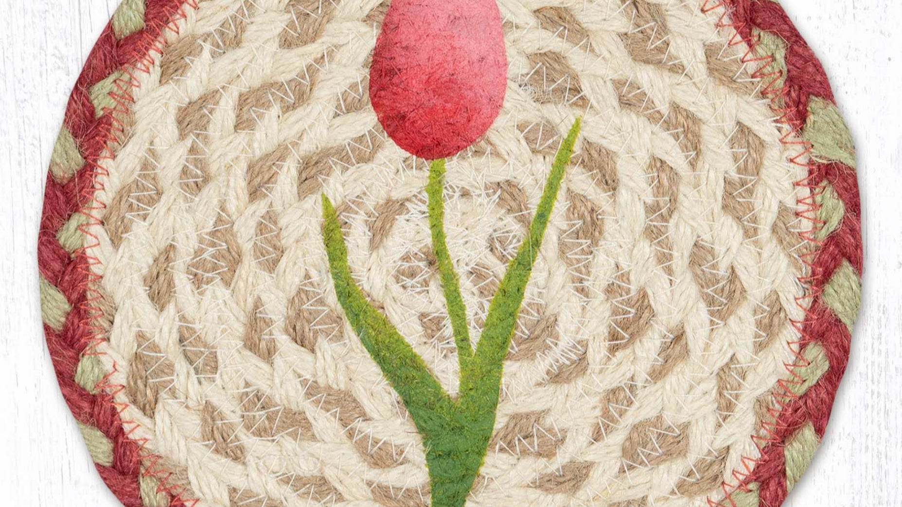 Earth Rugs Tulip Coaster – 7" Round Spring Floral Mat in Braided Jute
