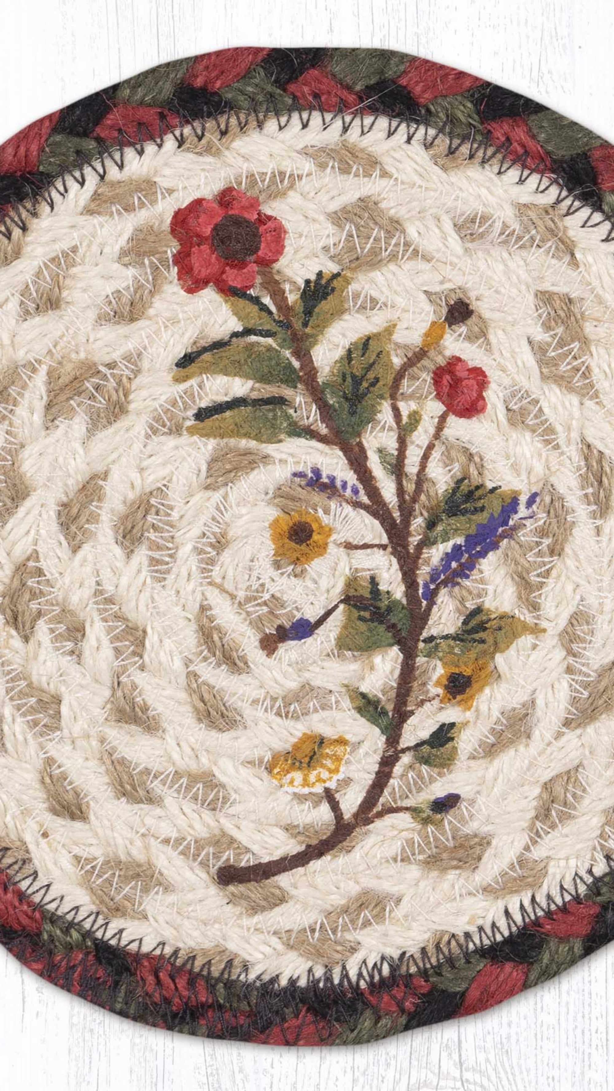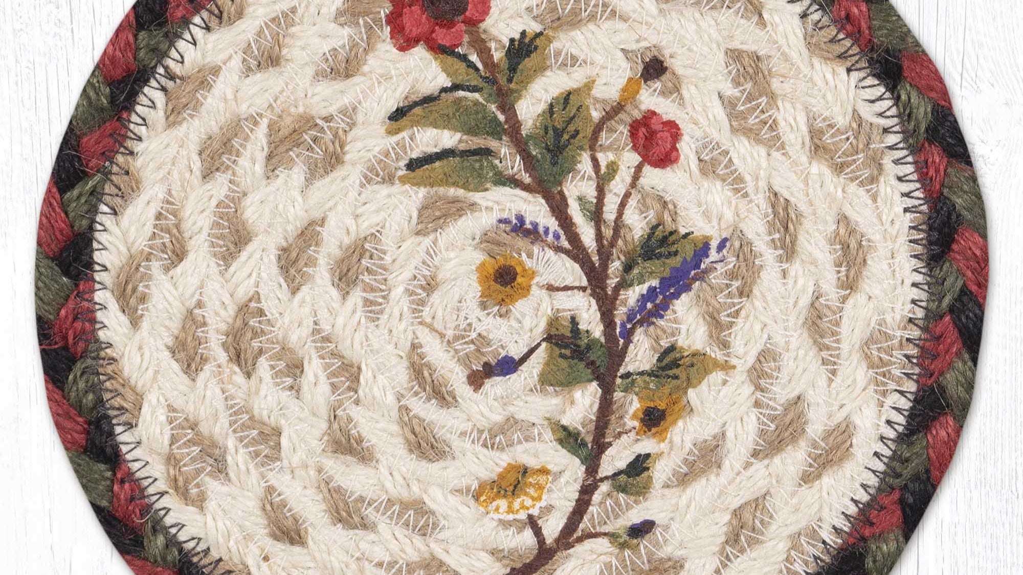 Earth Rugs Rustic Farmhouse Braided Jute Coaster 7" Round with Plant Kindness Design