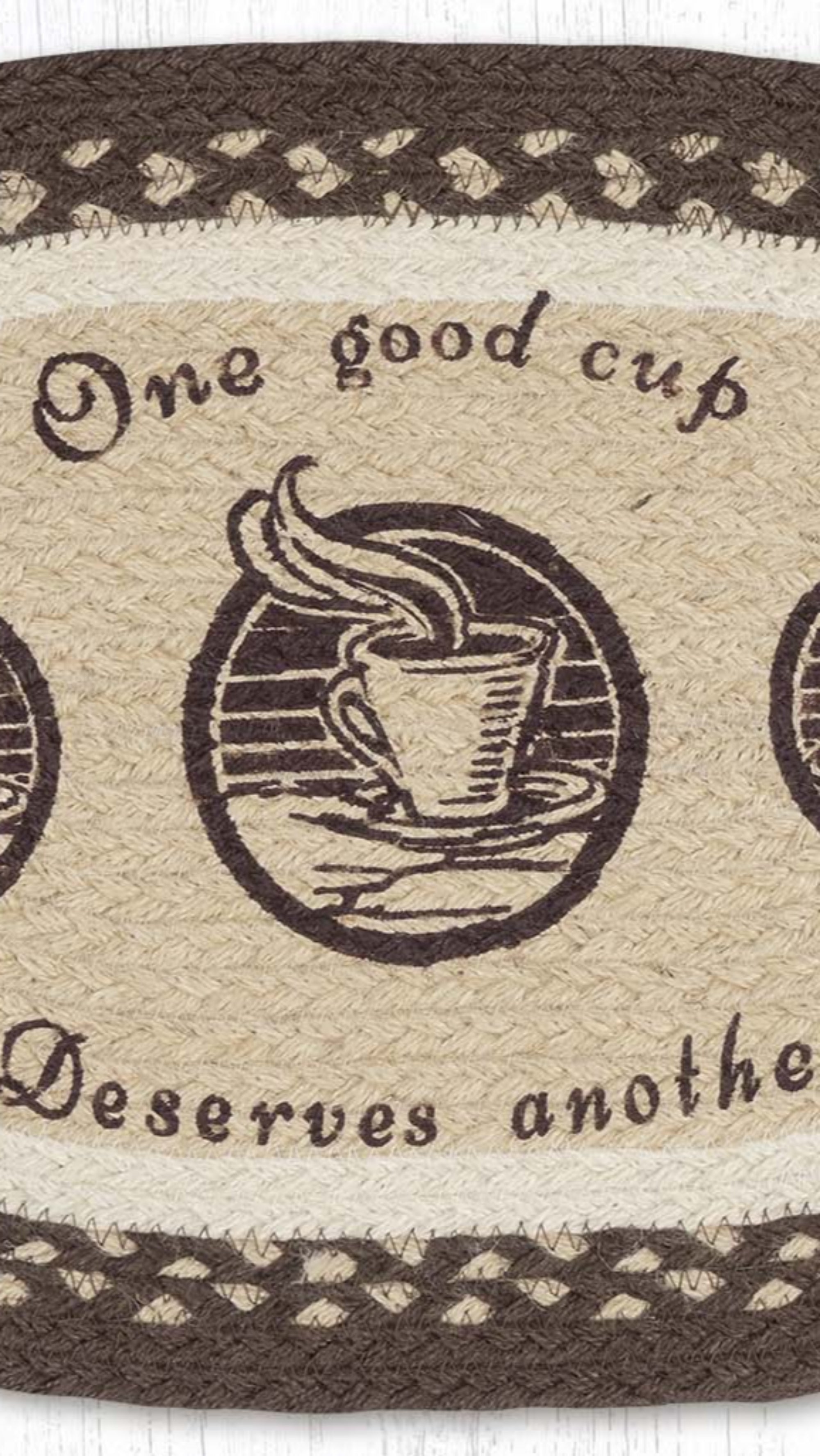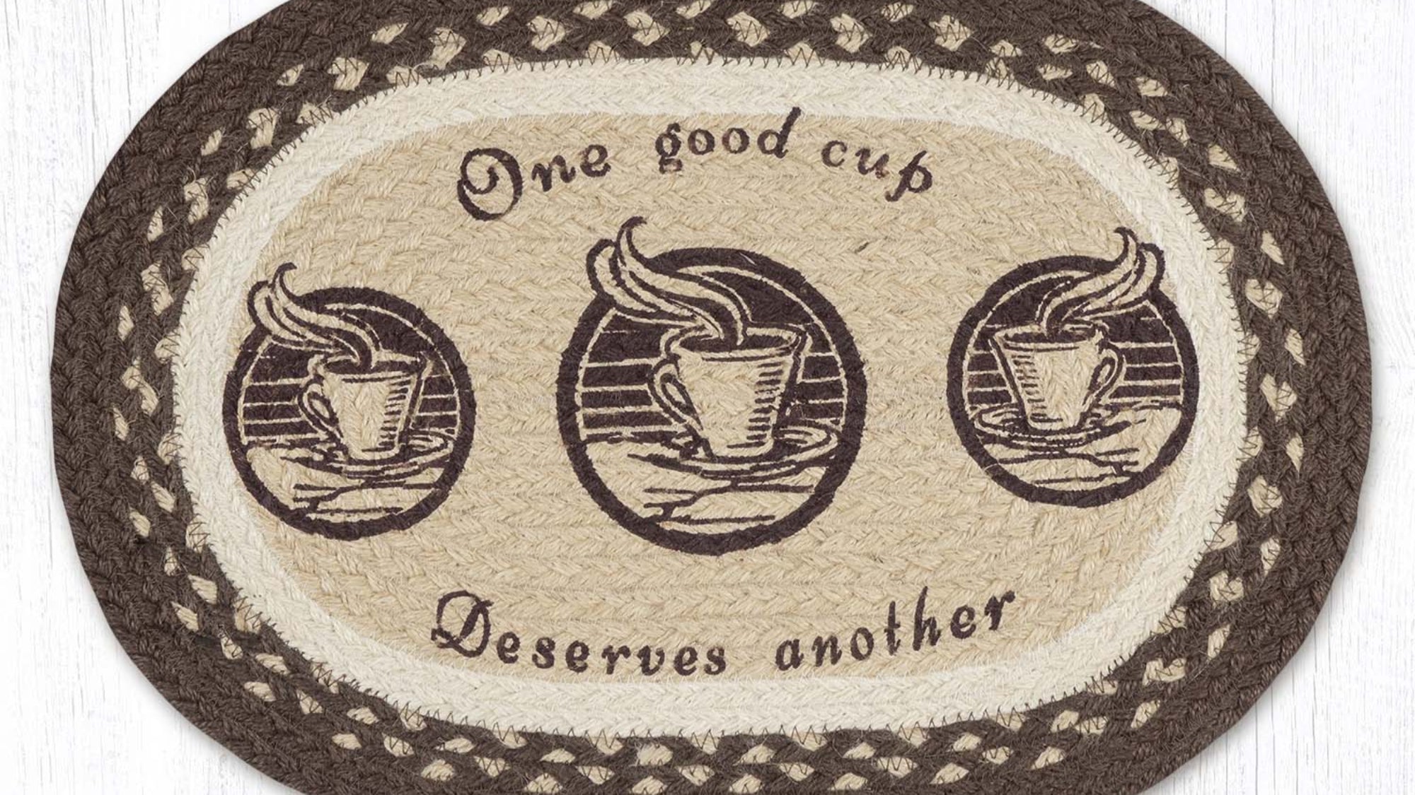 braided jute placemat,braided rustic oval mat,coffee lovers dining décor,coffee mug placemat,coffee placemat,country kitchen coffee accent,cozy kitchen table decor,Earth Rugs placemat,eco-friendly table mat,farmhouse breakfast table,farmhouse oval placemat,handmade oval placemat,lodge cabin dining decor,Placemat,rustic coffee decor,rustic farmhouse tableware