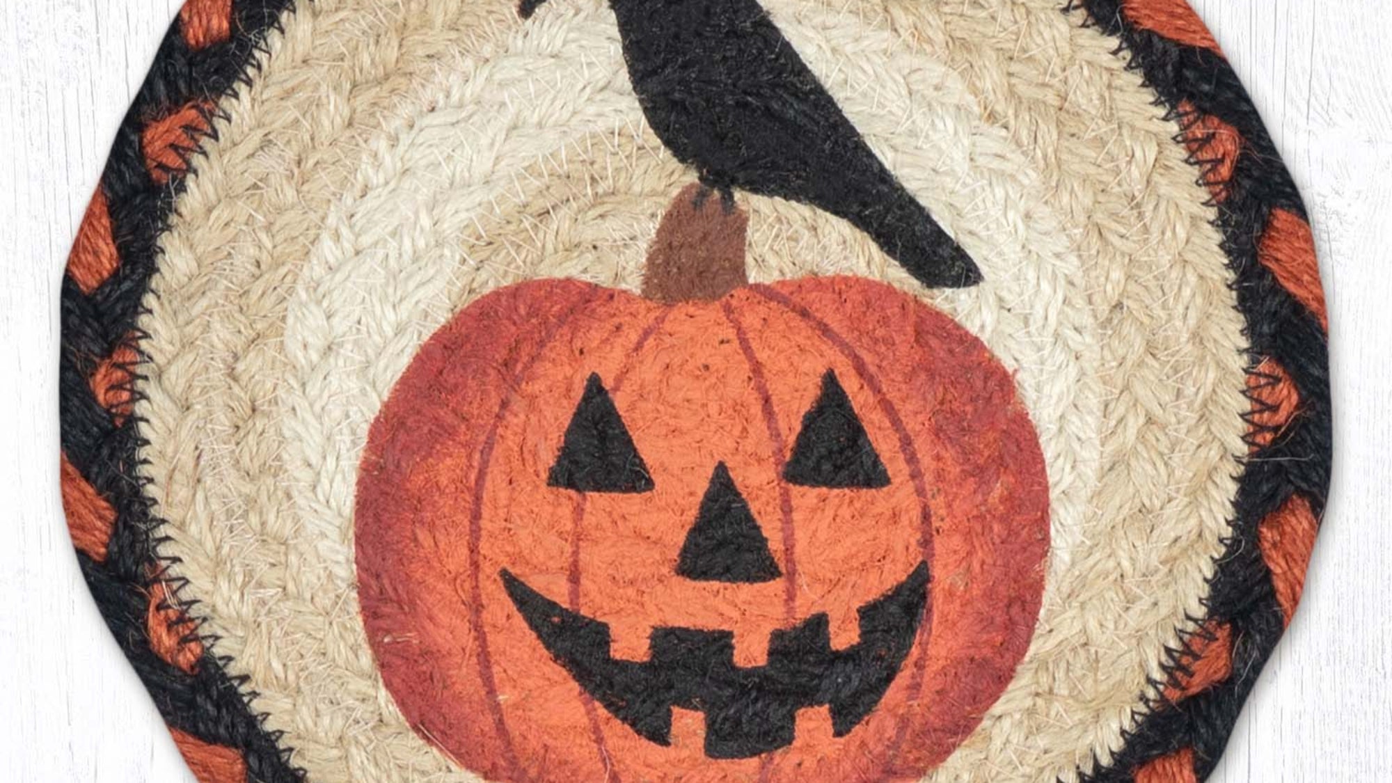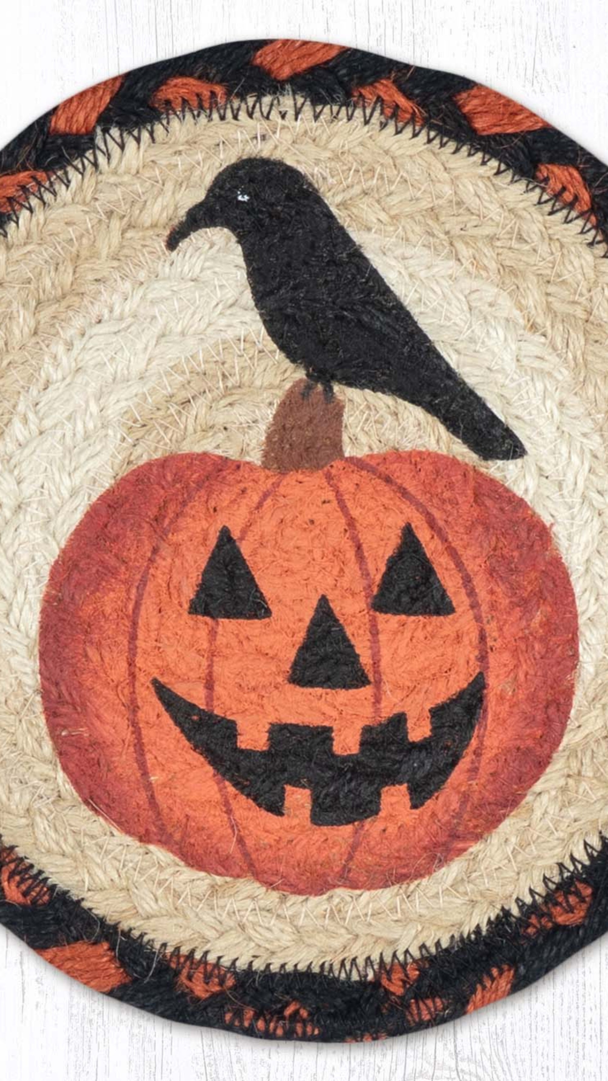 Earth Rugs Rustic Lodge Crow Pumpkin Round Coaster 7" Eco-Friendly Halloween Accent