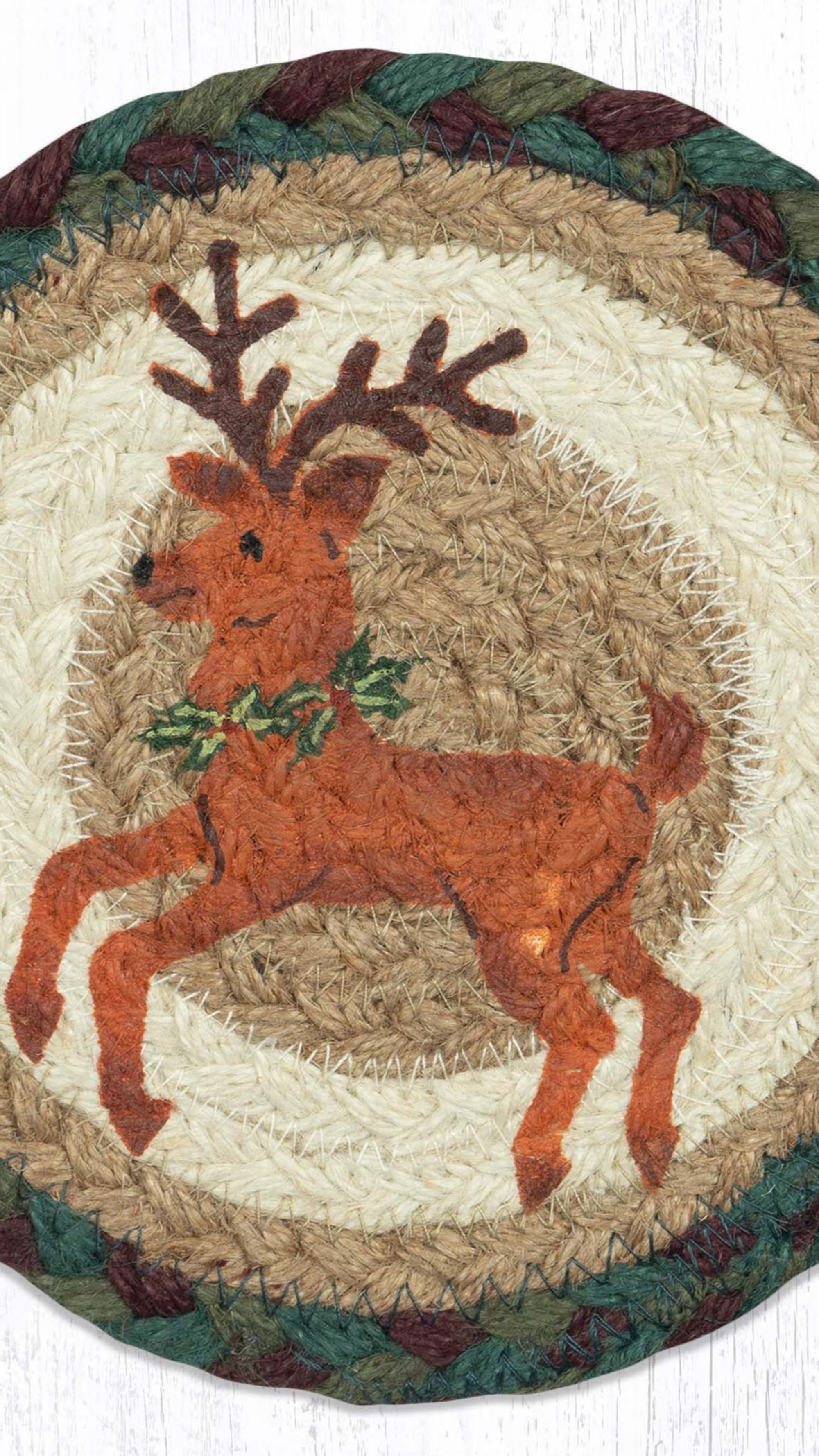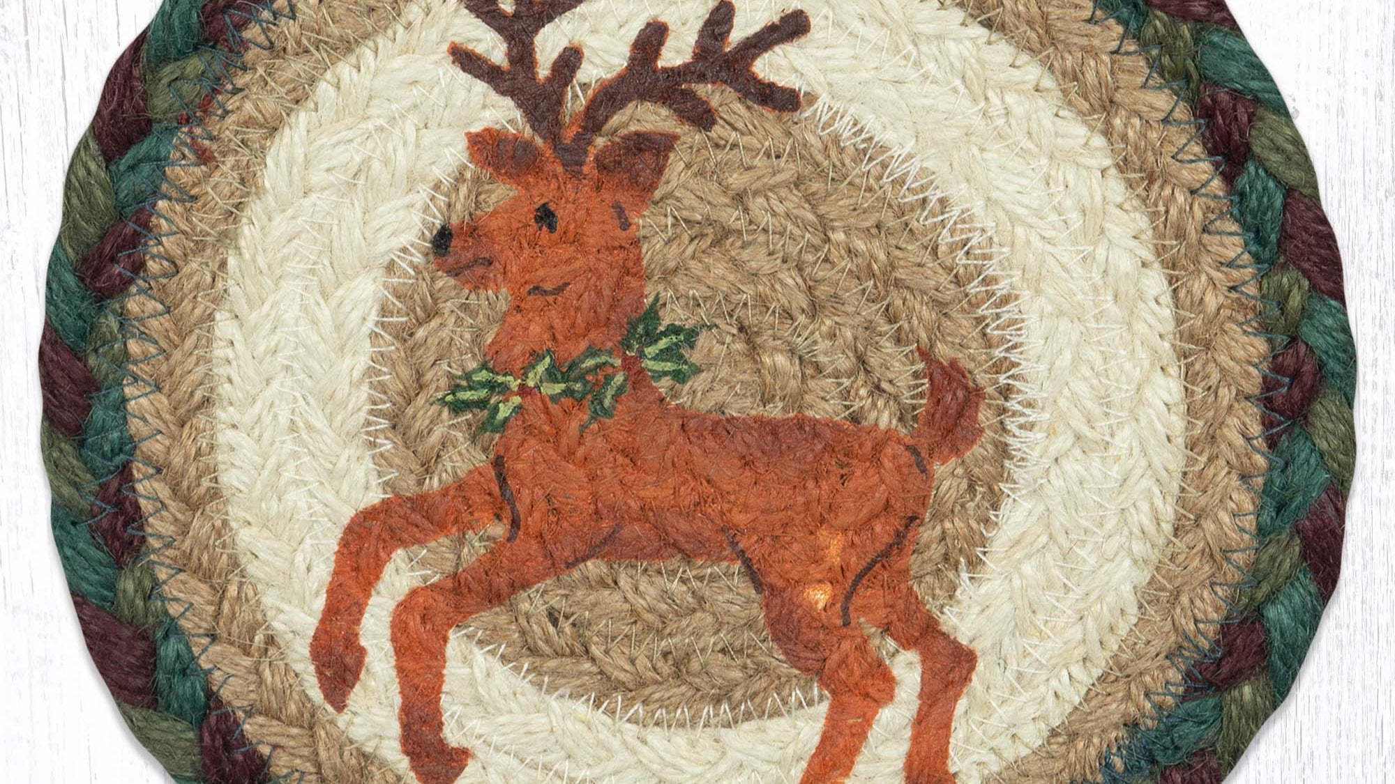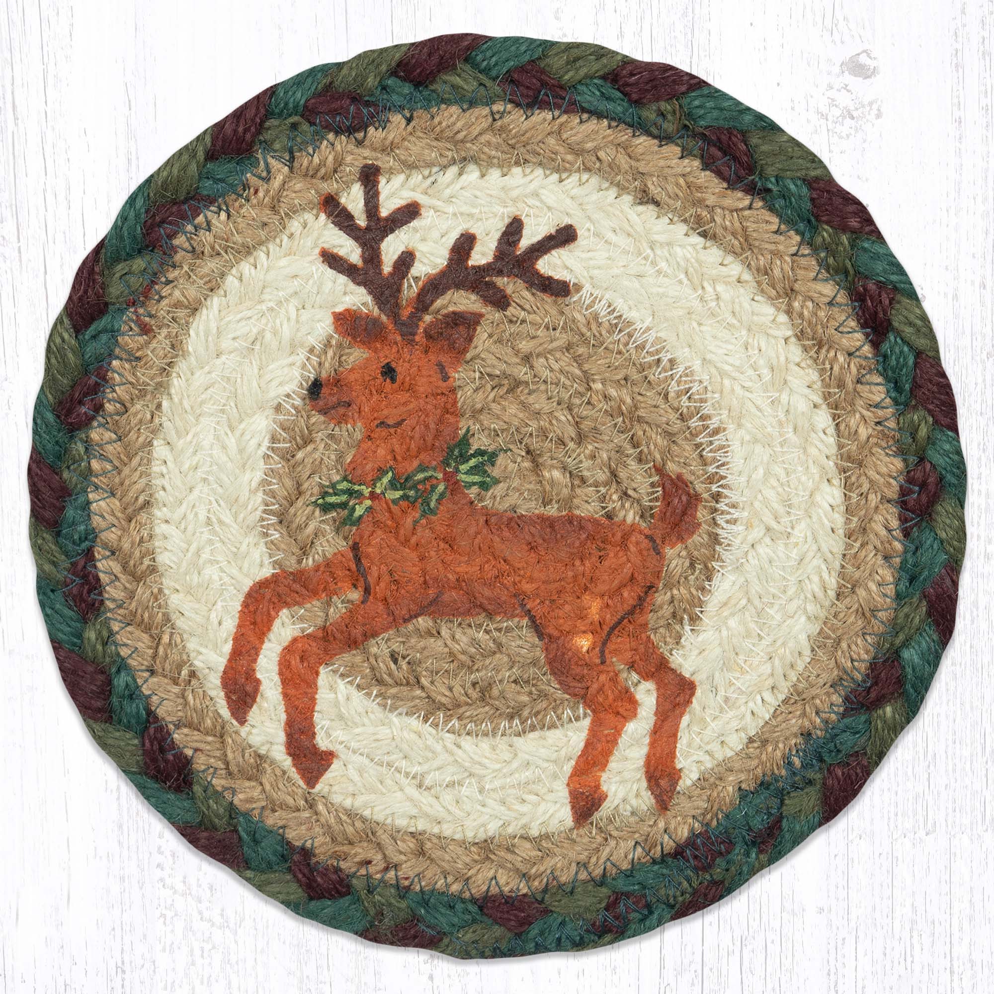 Earth Rugs Rustic Reindeer Round Large Coaster 7" Holiday Dining Table Accent
