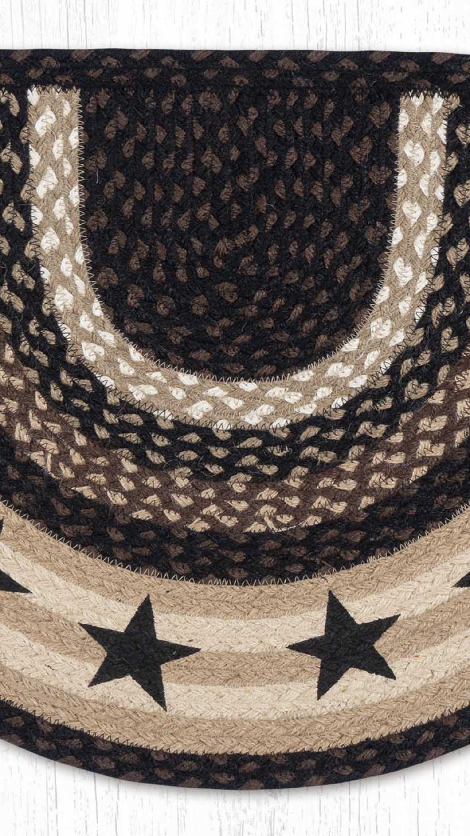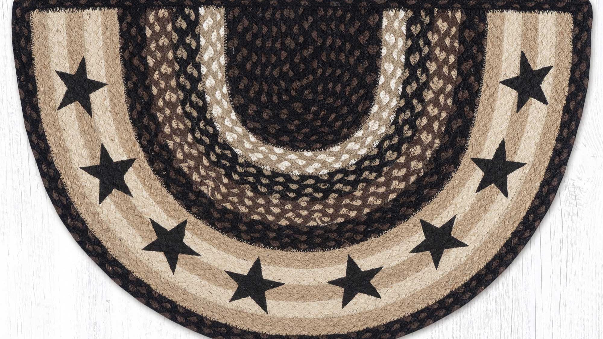Earth Rugs Black Stars Printed Slice Tread 18"x29" Durable Handcrafted Jute Slice Rustic Farmhouse Cabin Accent Floor Mat