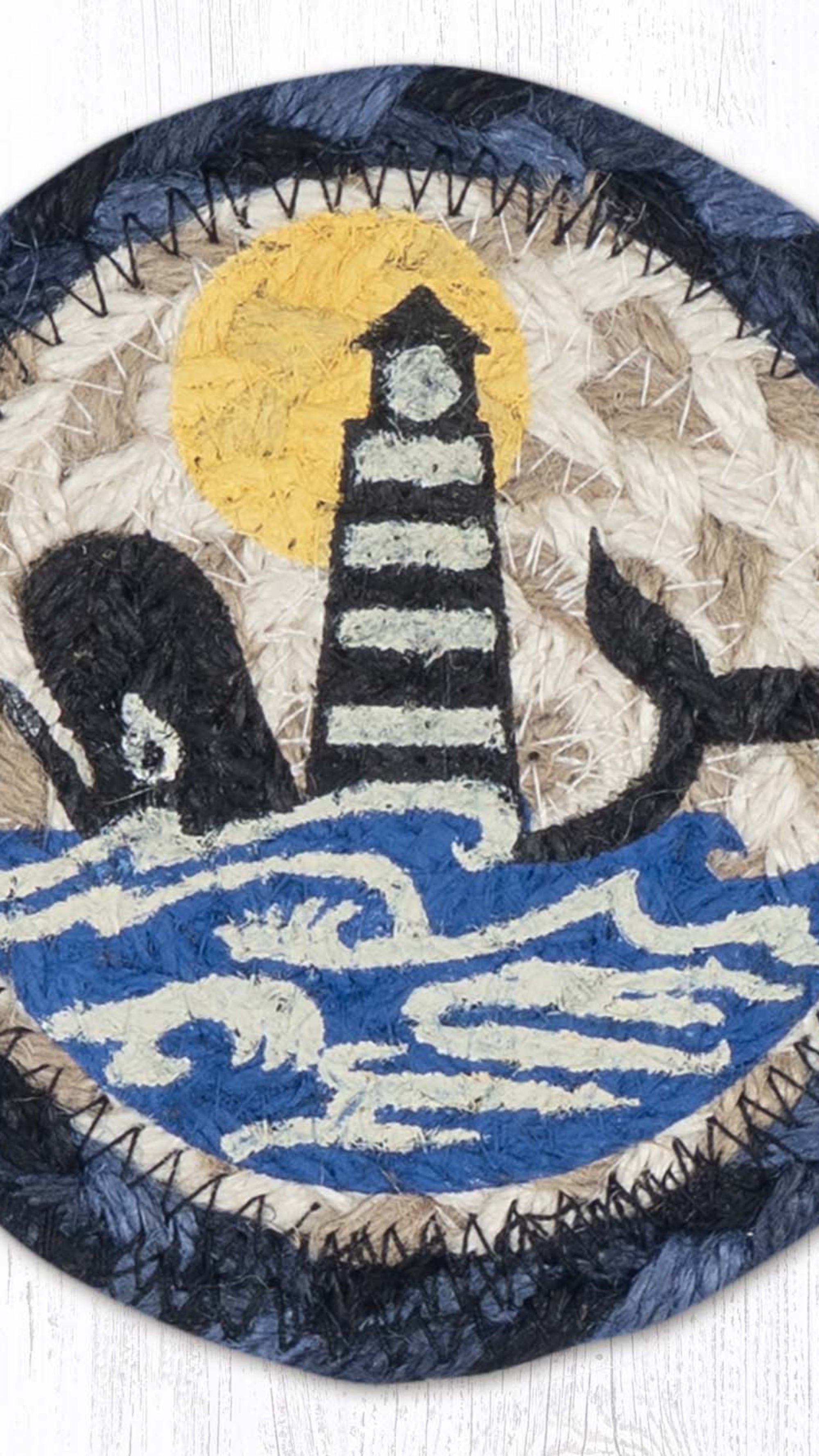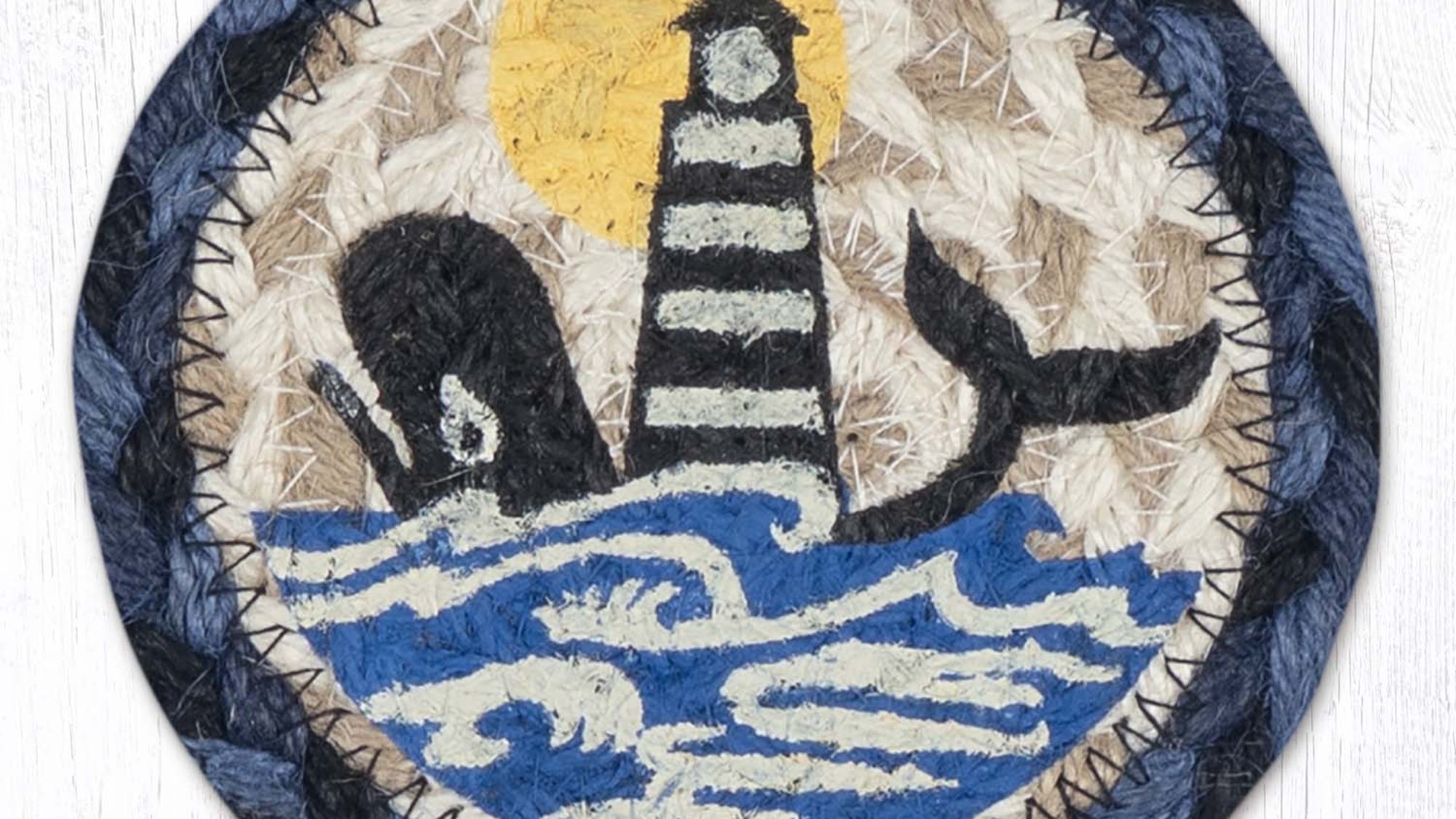Earth Rugs Seaside Whale & Lighthouse Coaster – Marine Style Square Drink Protector 5"x5"