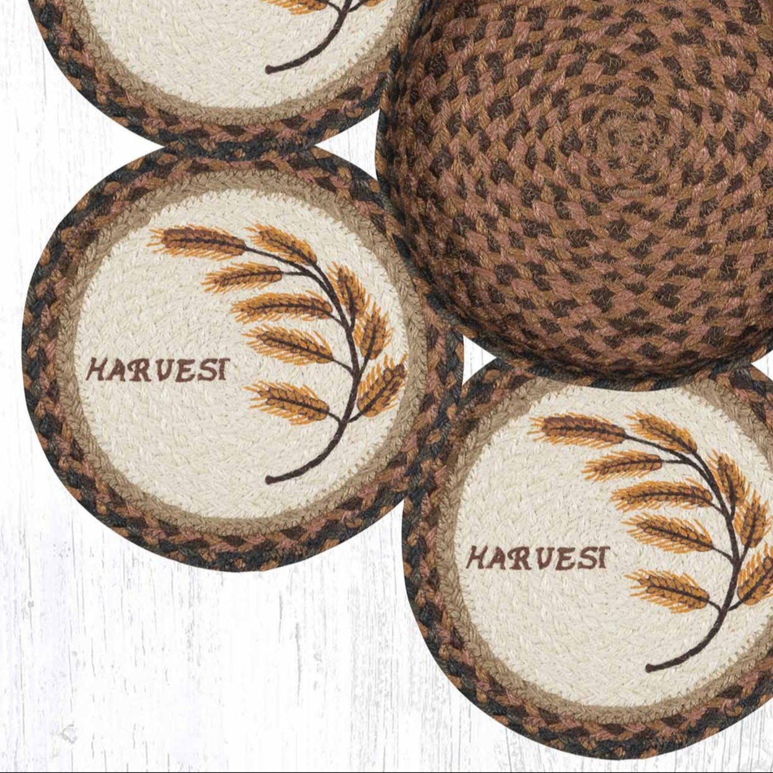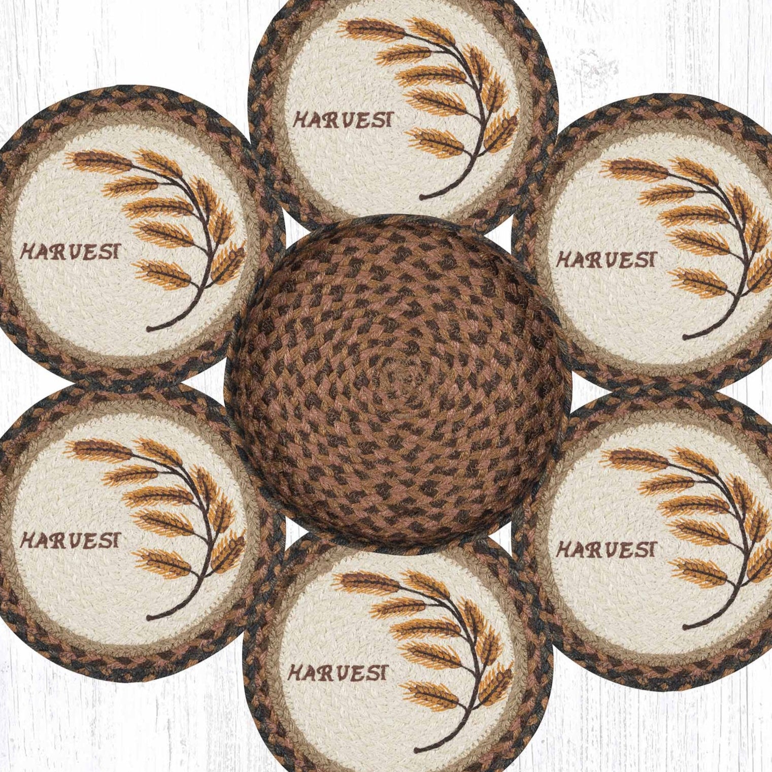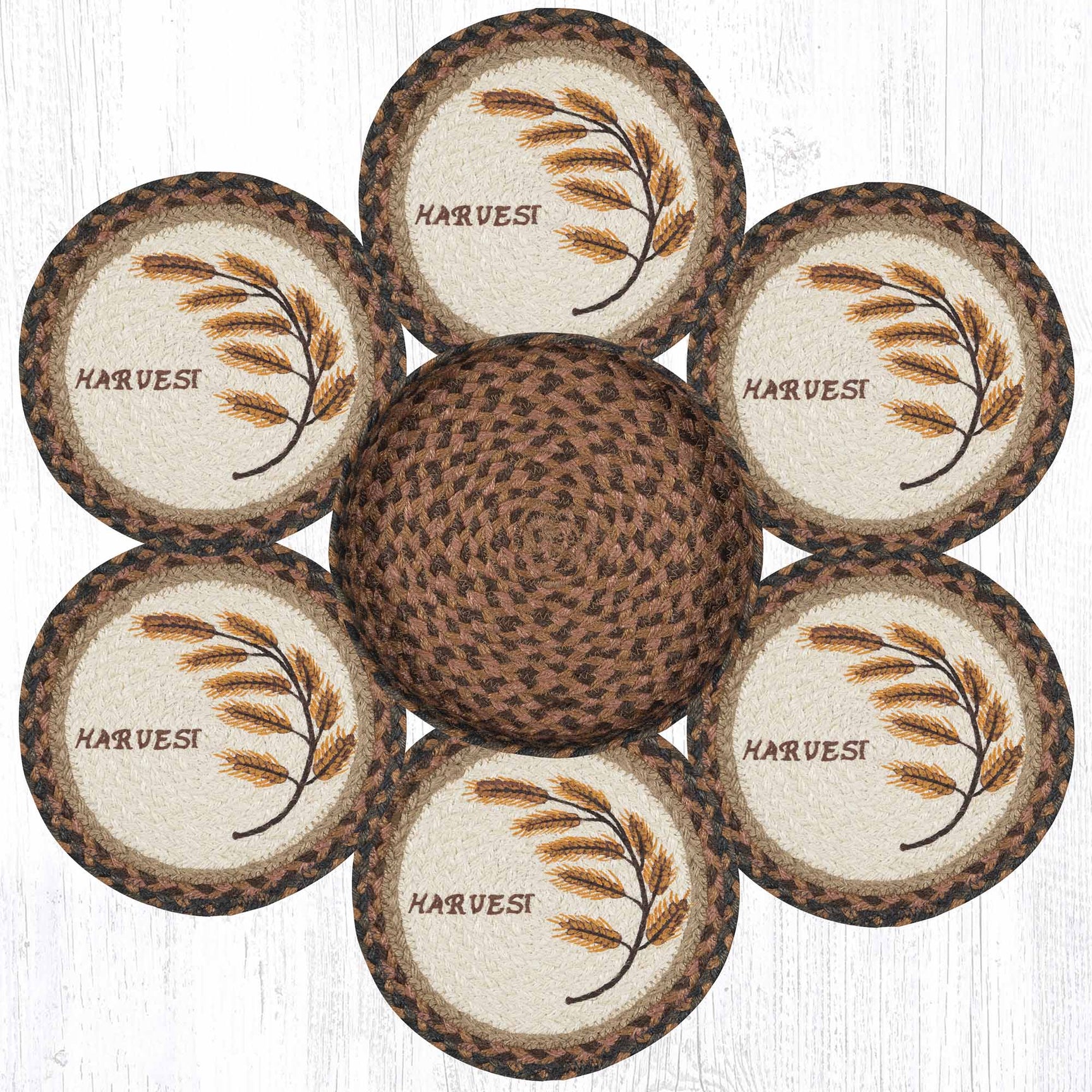 SKU - ER56-802GWEarth Rugs Six Piece Golden Wheat Jute Trivets Set with Woven Basket