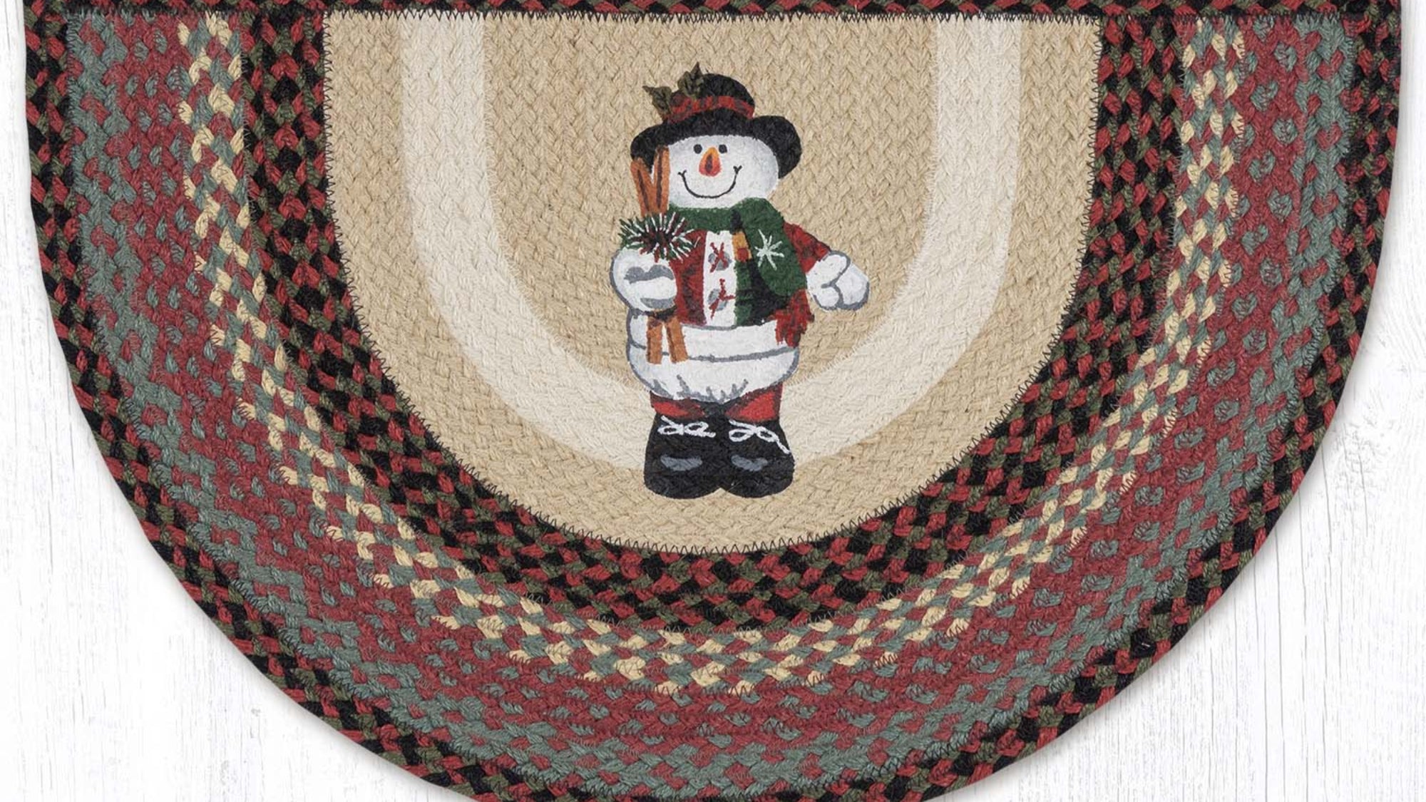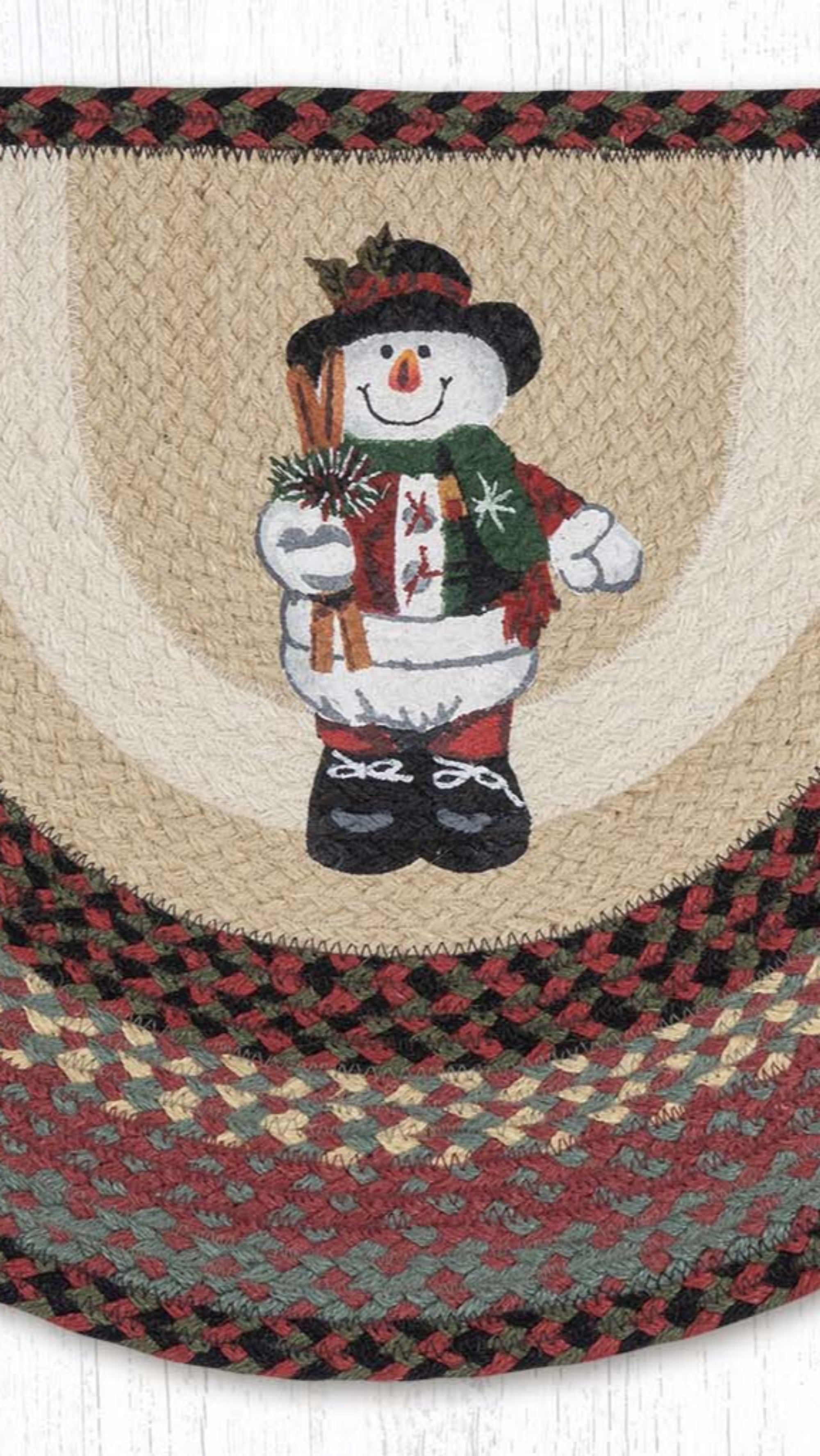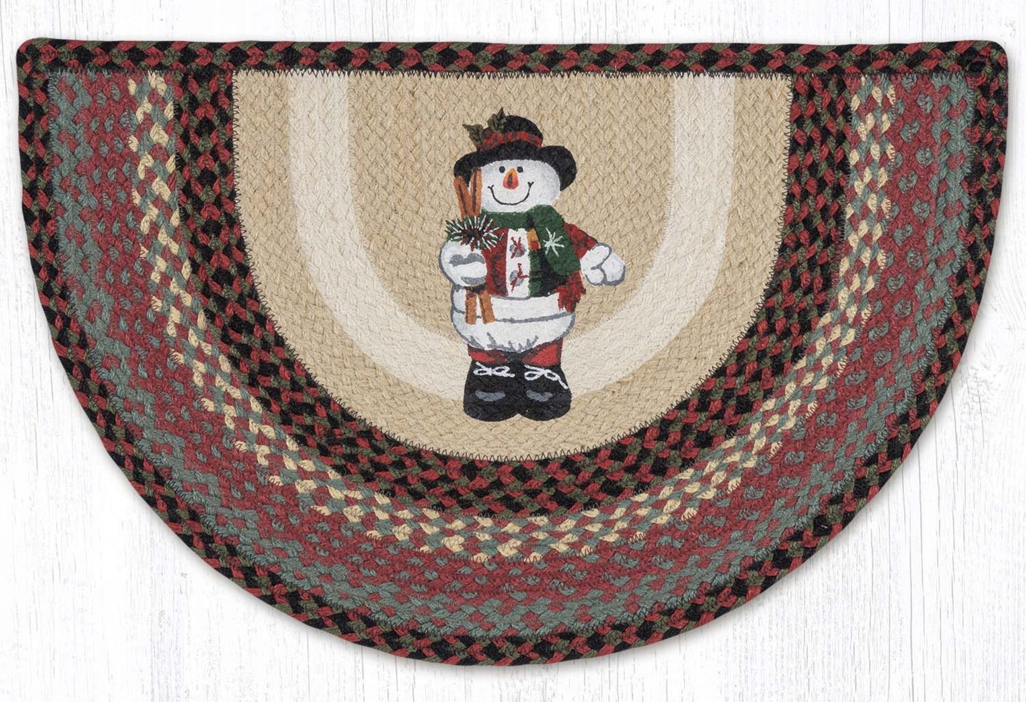 18"x29" holiday floor tread,cozy Christmas cabin décor,Earth Rugs festive snowman slice,Earth Rugs winter accent,eco-friendly holiday accent,farmhouse cabin wall décor,handcrafted snowman floor décor,holiday floor/table décor,lodge cabin table accent,lodge winter accent,rustic farmhouse festive décor,rustic holiday cabin décor,rustic lodge seasonal accent,rustic winter snowman slice,Snowman in Top Hat tread