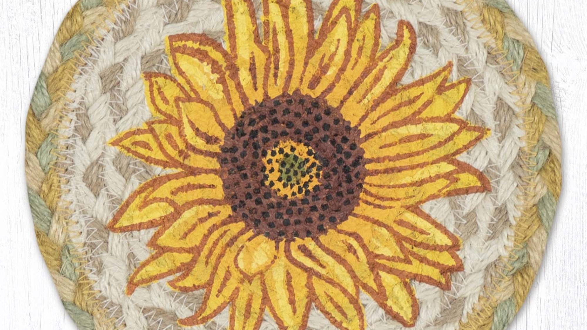Earth Rugs Sunflower Round Large Coaster 7" Rustic Farmhouse Table Accent