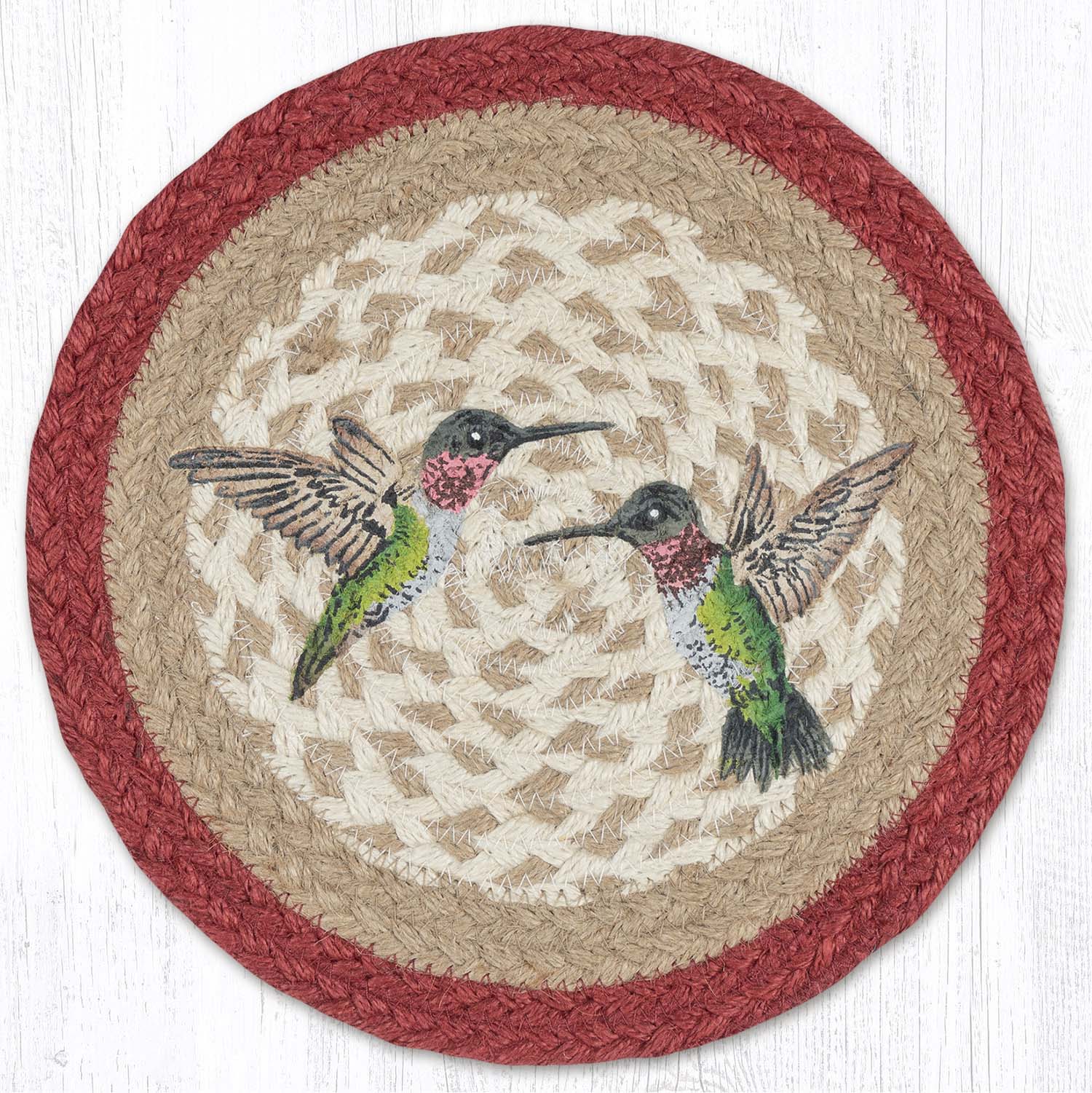 Earth Rugs Vibrant Hummingbird Design Round Jute Trivet
