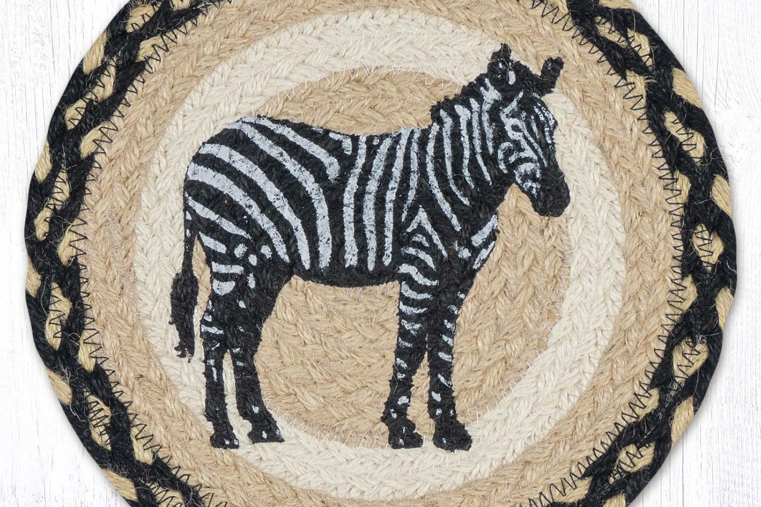 Earth Rugs Zebra Silhouette Printed Round Jute Trivet – 10" Safari Wildlife Accent with Heat-Resistant Eco-Friendly Braided Construction