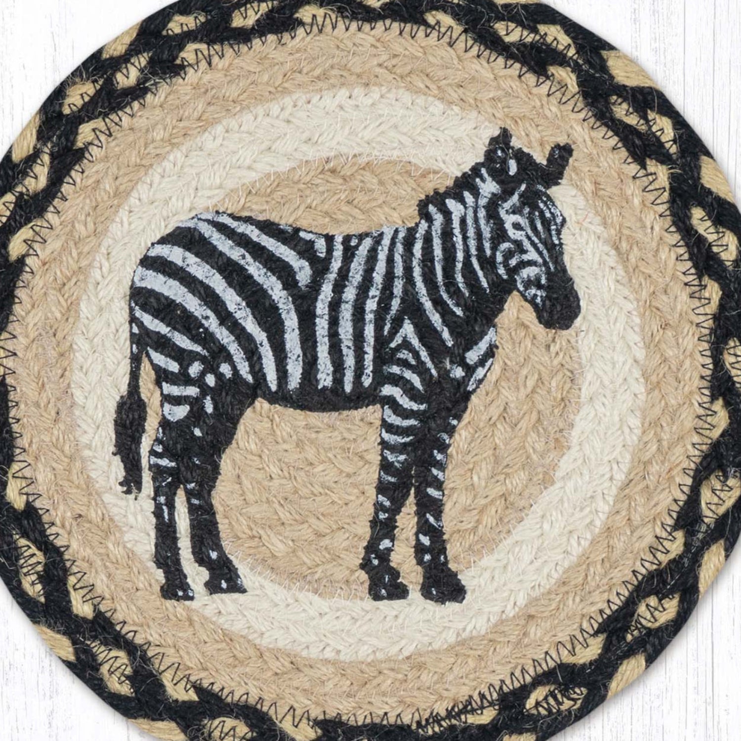 Zebra Silhouette Printed Round Jute Trivet – 10" Safari Wildlife Accent with Heat-Resistant Eco-Friendly Braided Construction