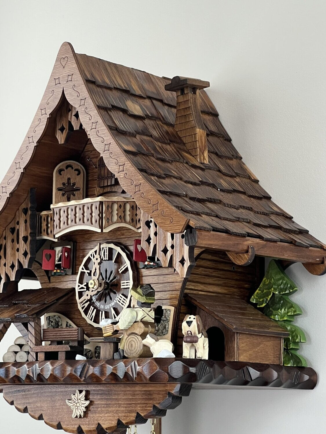 - Traditional chalet-style cuckoo clock with detailed craftsmanship