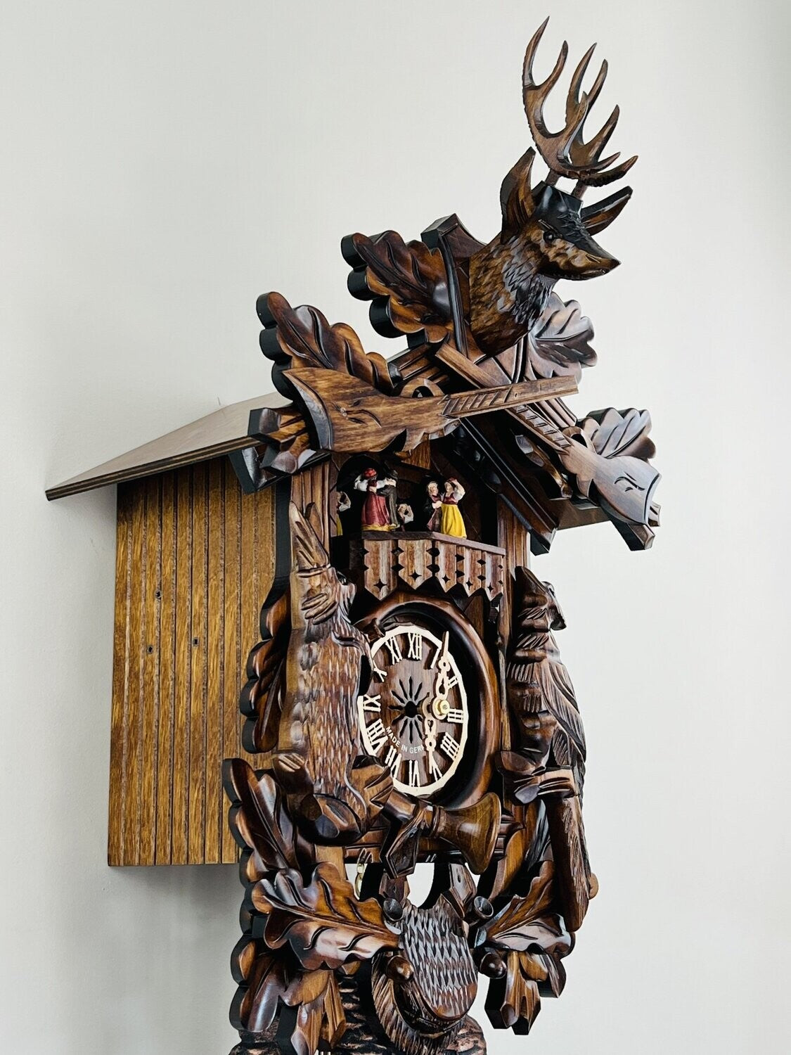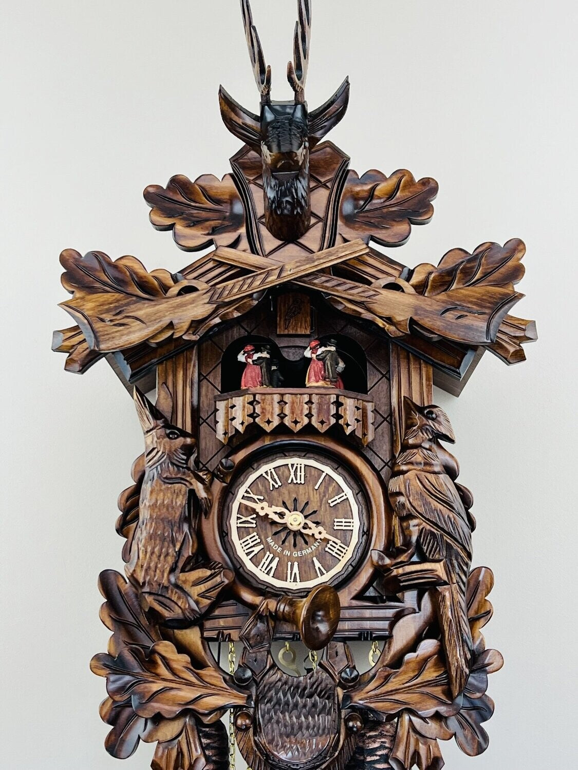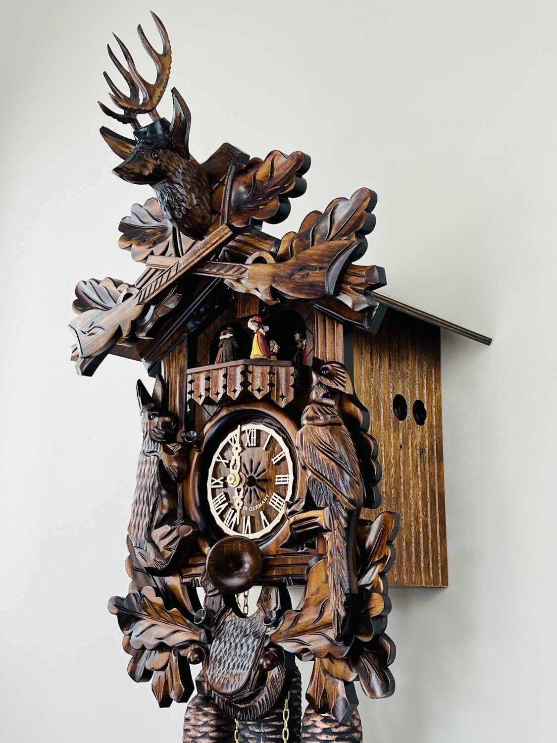 - Hunter's cuckoo clock with hand-carved animals