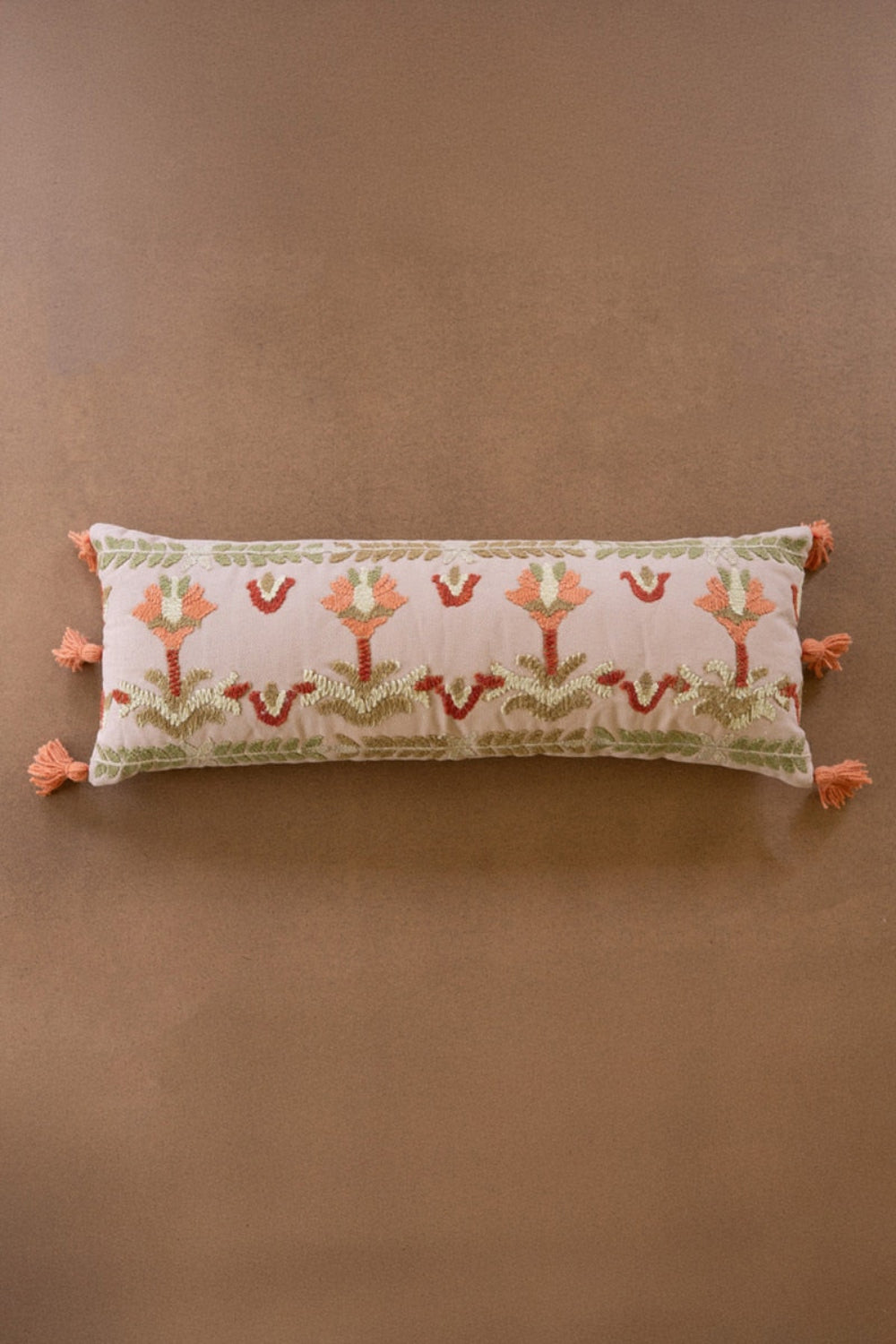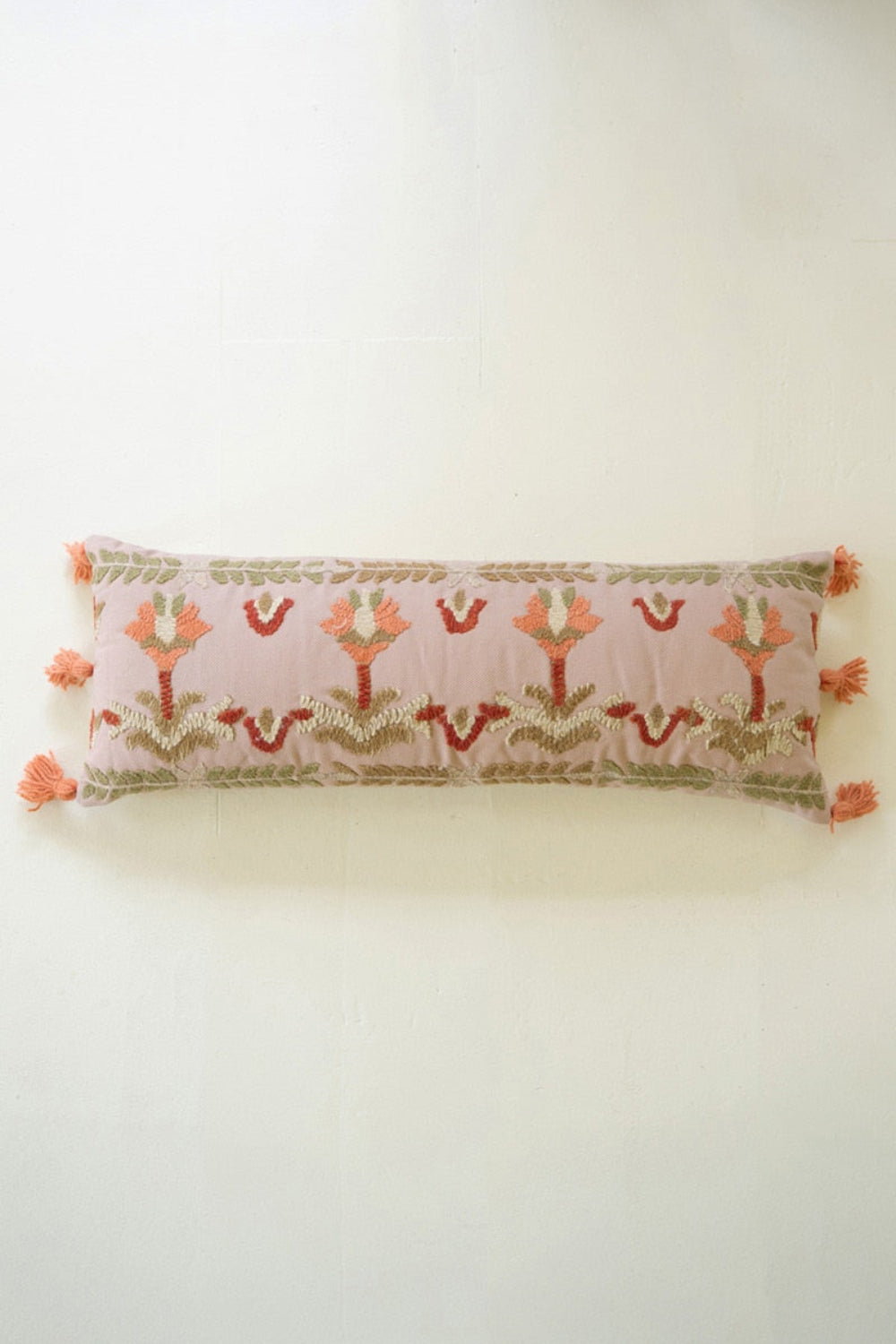 Embroidered Coral Lumbar Pillow with Tassels – 12" Tall Accent Pillow by Kalalou