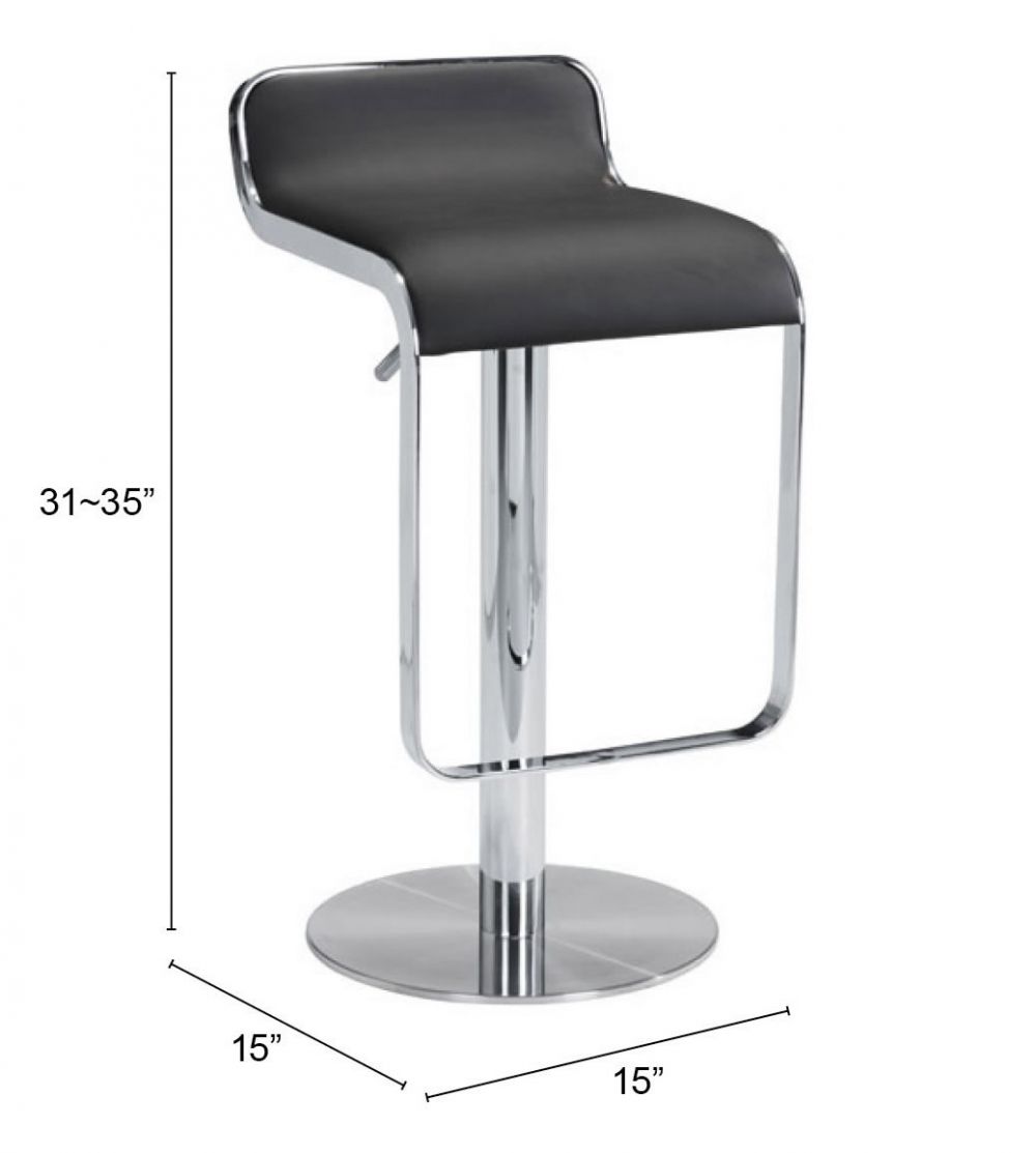 Equino Barstool Black – 35" H, Faux Leather Seat & Steel Chrome Frame By Zuo Modern