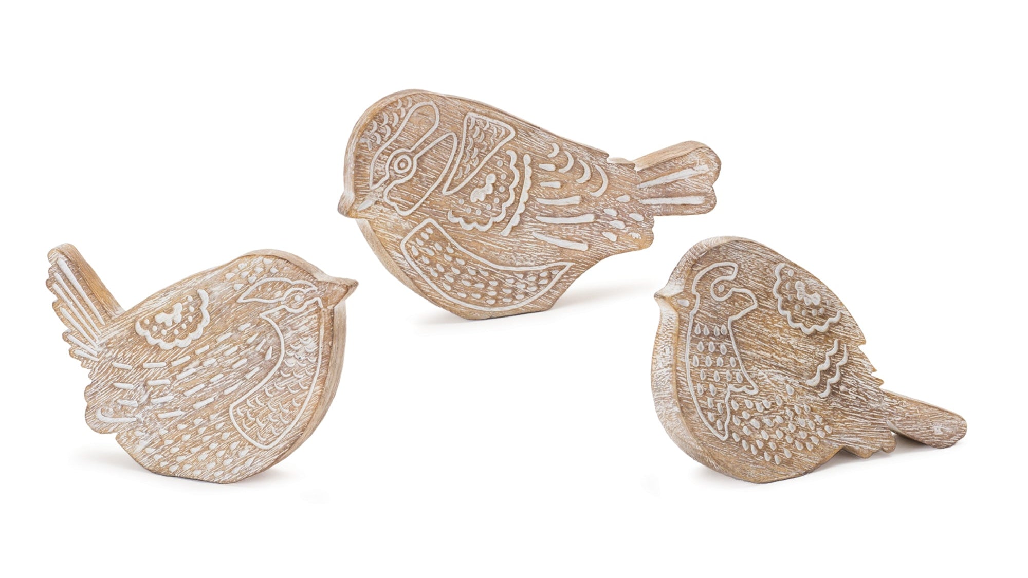 Welcome the gentle charm of spring into your home with the Etched Bird Decor Set by Melrose. This delightful trio features three resin bird figurines in soft neutral tones of beige, brown, and white, each crafted with whimsical etched detailing and natural wood-grain texture. Their warm, earthy palette makes them perfect for mantels, bookshelves, tabletops, tiered trays, or any cozy nook that needs a touch of nature-inspired serenity. Lightweight, durable, and timeless, these birds blend seamlessly with farmhouse, cottage, rustic, or traditional décor. Sold as a set of three assorted designs for a balanced, meaningful display all year long.