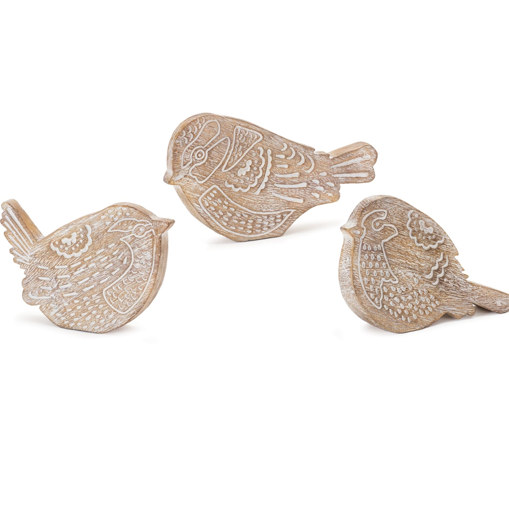 Etched Bird Decor Set – 4"H Resin Bird Accents Neutral Brown and White Home Decor (Set of 3) by Melrose