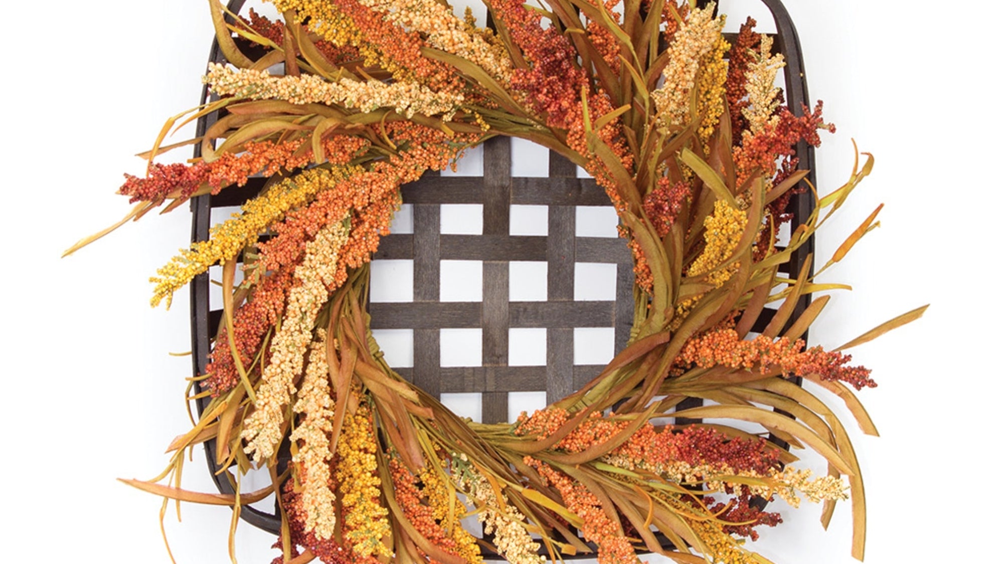 - Warm fall color palette adds festive charm to entryways and interior decor.