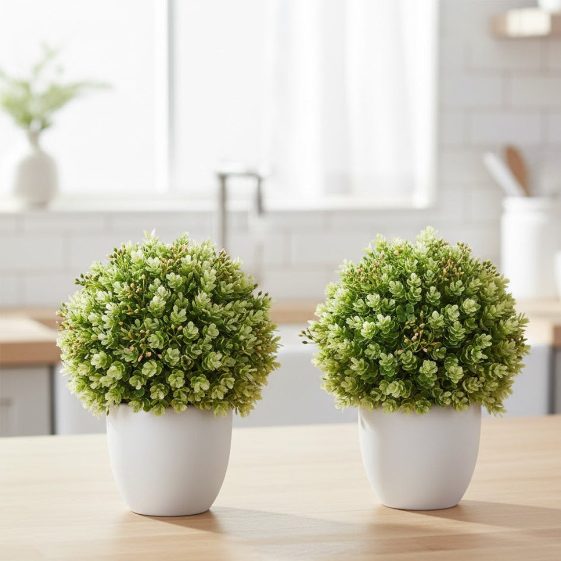 Decorative Foliage Half Orb Set – Plastic Green Tabletop Décor – Set of 2