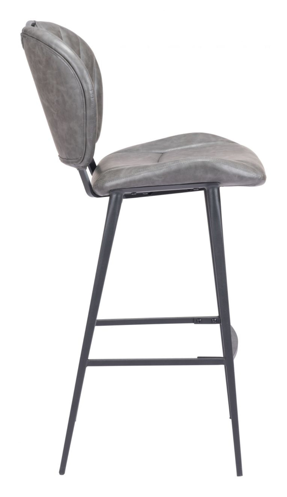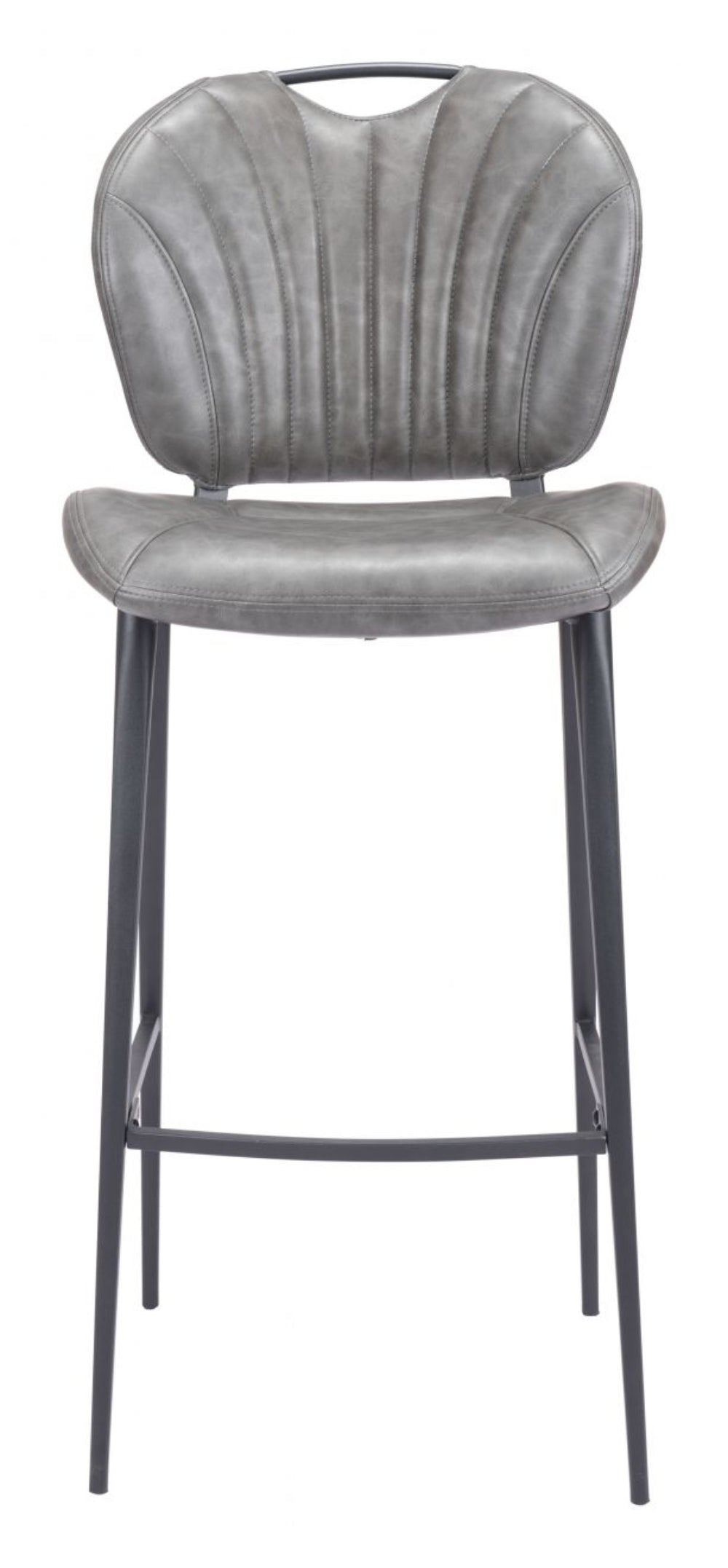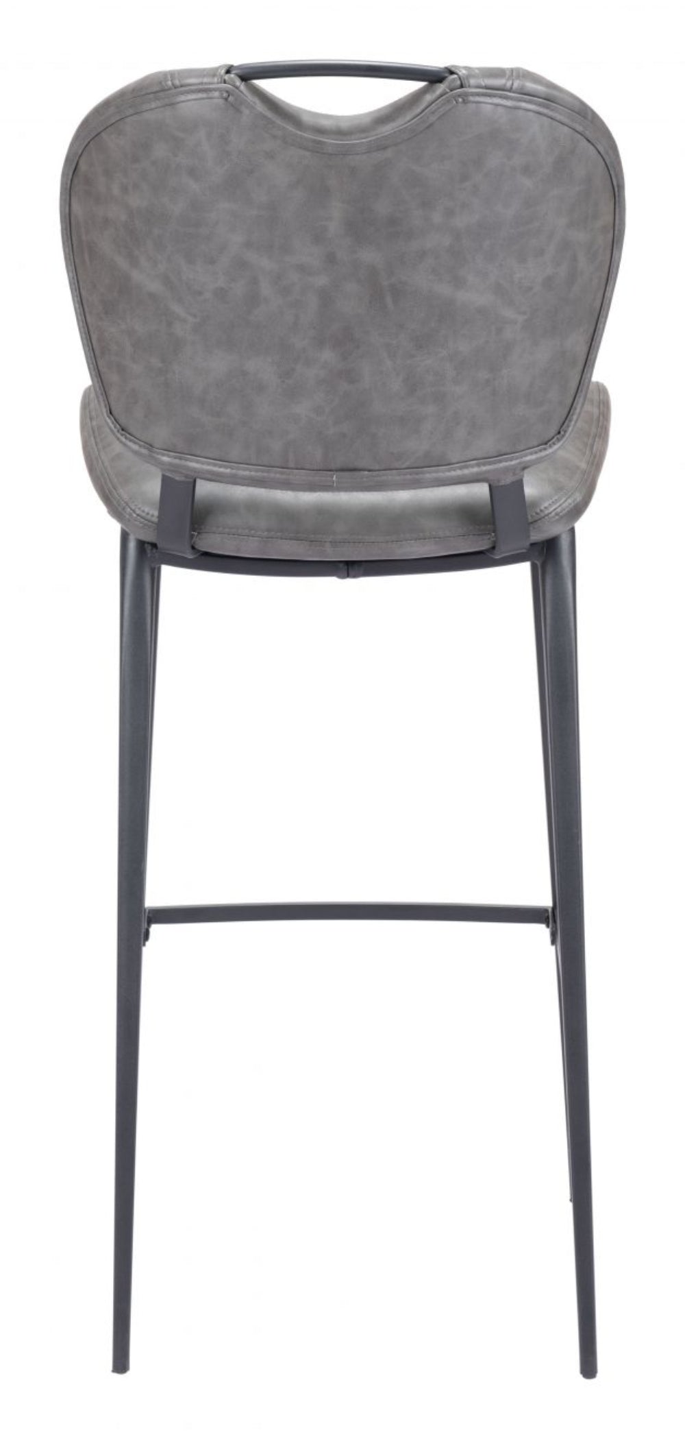 Faux Leather Barstool 43.7" H in Vintage Gray Finish with Black Steel Legs by Zuo Modern