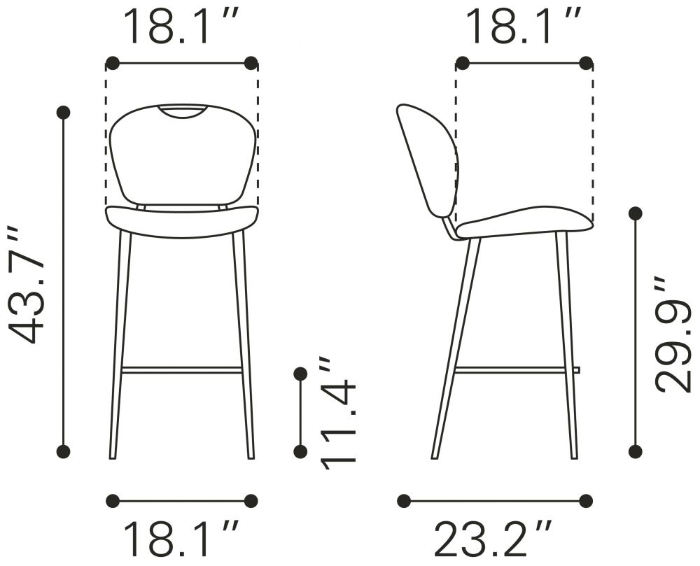 - With a seat height of 29.9" and overall height of 43.7", it fits most bar setups
