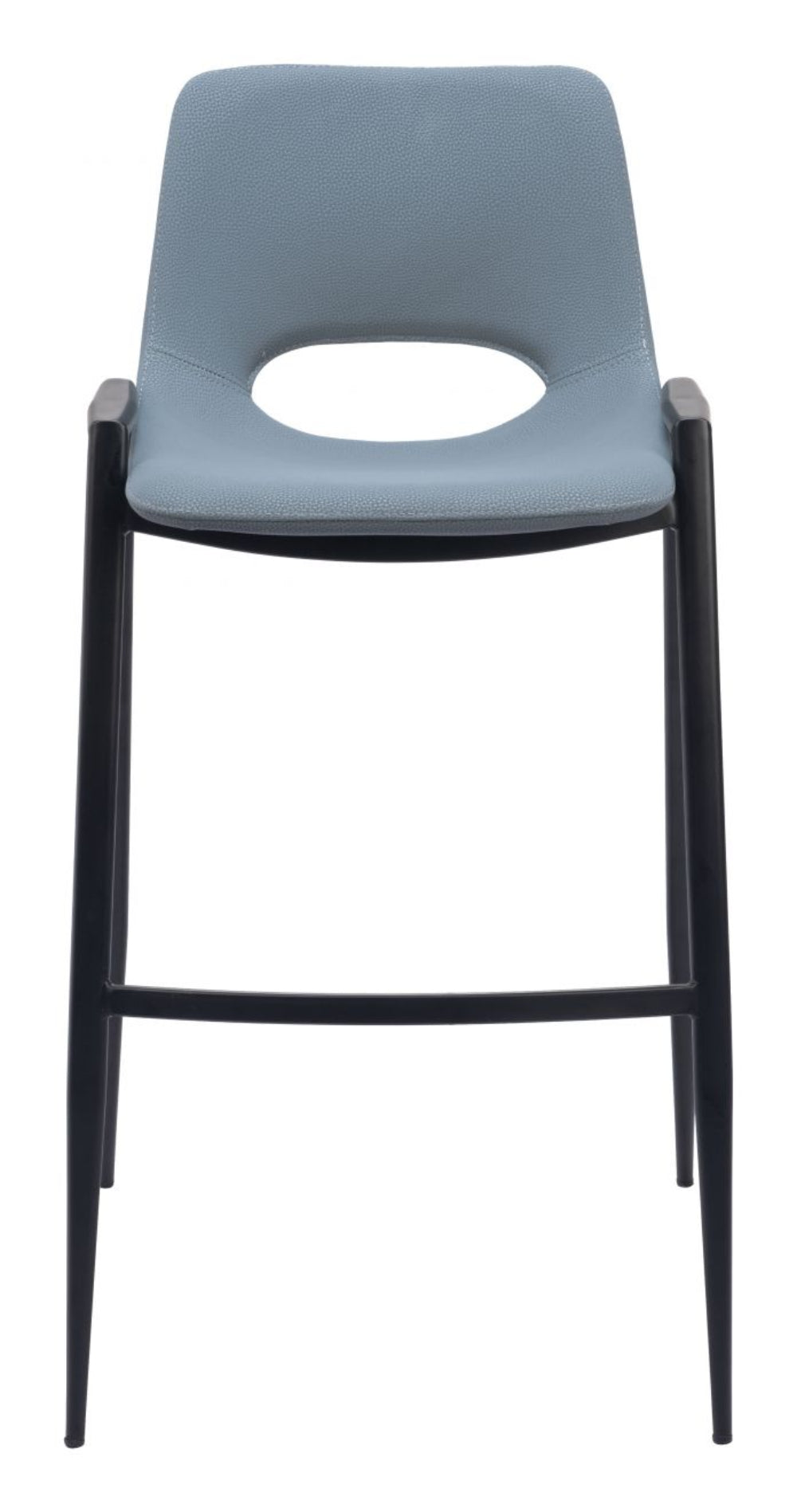 Update your kitchen or bar with this modern pair of Desi Barstool by Zuo Modern. Upholstered in smooth azure gray faux leather and grounded by a matte black powder-coated steel frame, these stools bring bold contrast and comfort in one cohesive look.